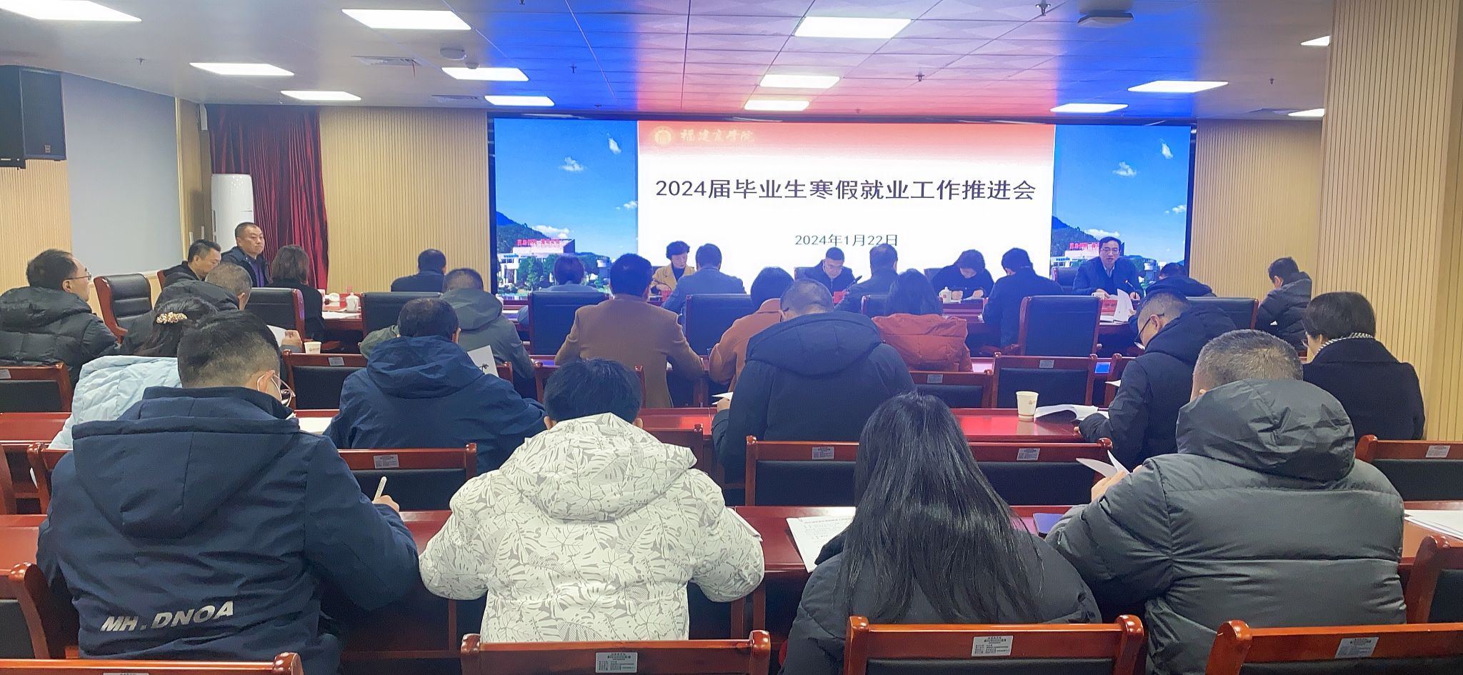 1月22日上午,金年会在连江校区第一会议室召开2024届毕业生寒假就业工作推进会。校党委书记吴访益、校长程灵、副校长林文艺出席会议,有关职能部门负责人、二级学院党政负责人和就业工作联系人参加会议。会议由校党委副书记蒲文庆主持。