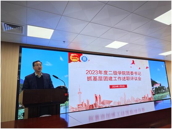 1月5日下午,校团委组织召开2023年度二级学院团委书记述职评议会,校党委副书记蒲文庆出席会议,有关部门负责人,二级学院党委副书记、团委负责人和校团委工作人员参加会议。会议由校团委负责人主持。