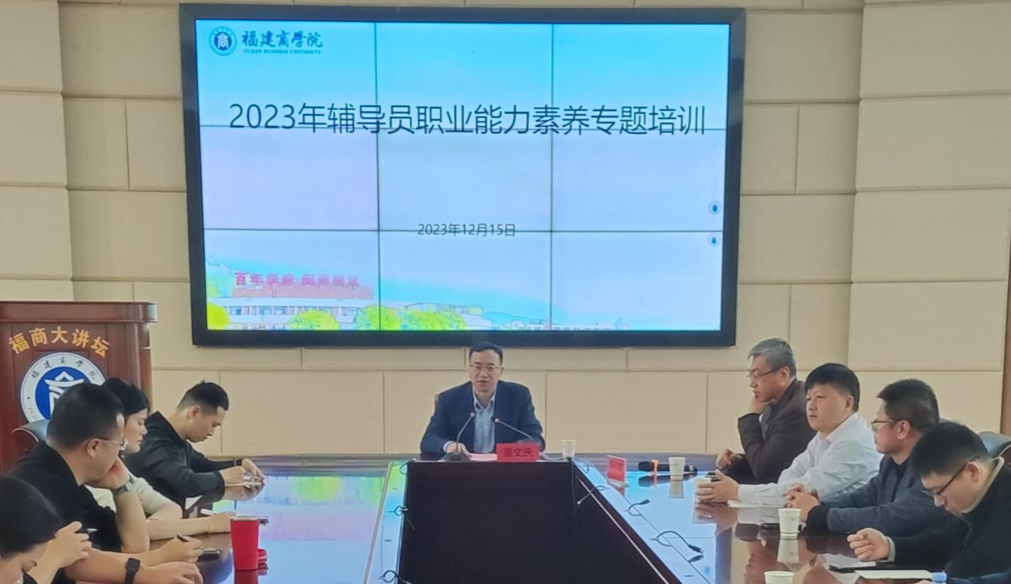 为提升辅导员的职业能力和专业素养,12月15日上午,金年会在明德楼视频会议室举办辅导员职业能力素养专题培训。培训分别邀请了福建农林大学教授李中斌和闽江学院人文学院党委书记杨晓主讲,副校长蒲文庆、全体辅导员、学生工作部有关人员近80人参加。
