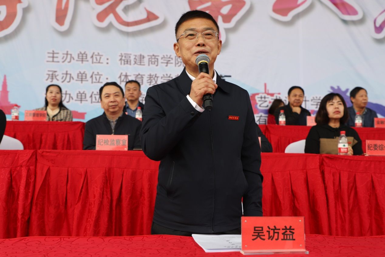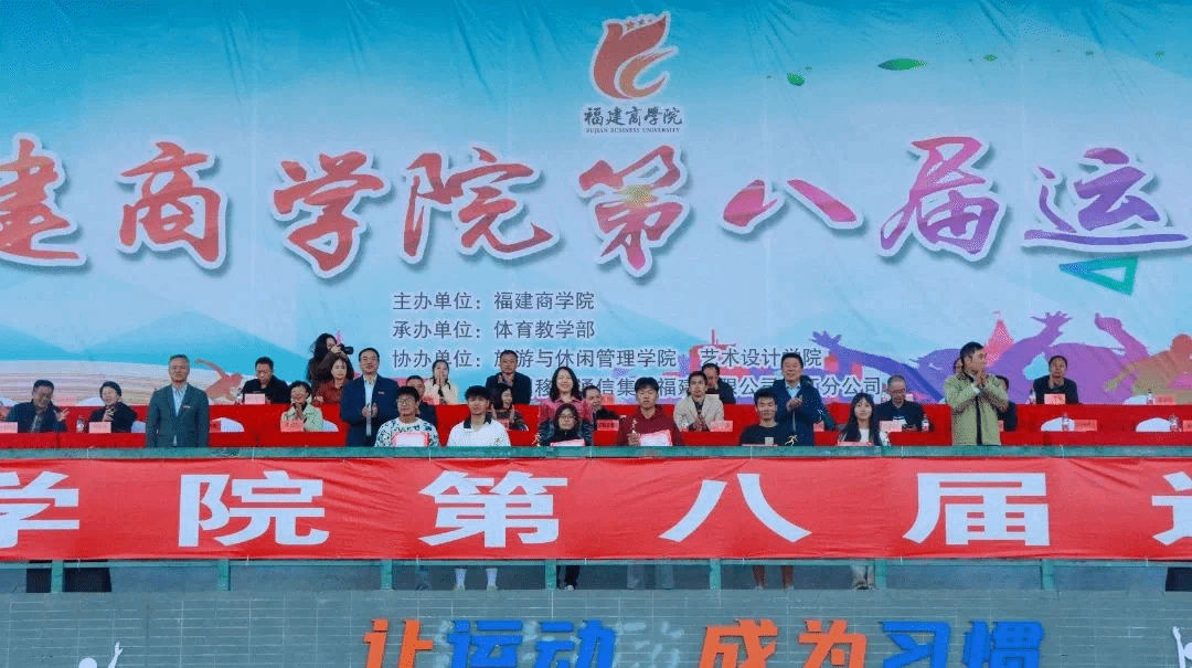 11月16日至17日,金年会第八届运动会在连江校区隆重举行。校领导吴访益、程灵、徐晓丹、杨晓翔、蒲文庆、萧罡、林宇峰,中国移动连江分公司总经理林舒,各二级学院及机关处室负责人等出席开幕式。