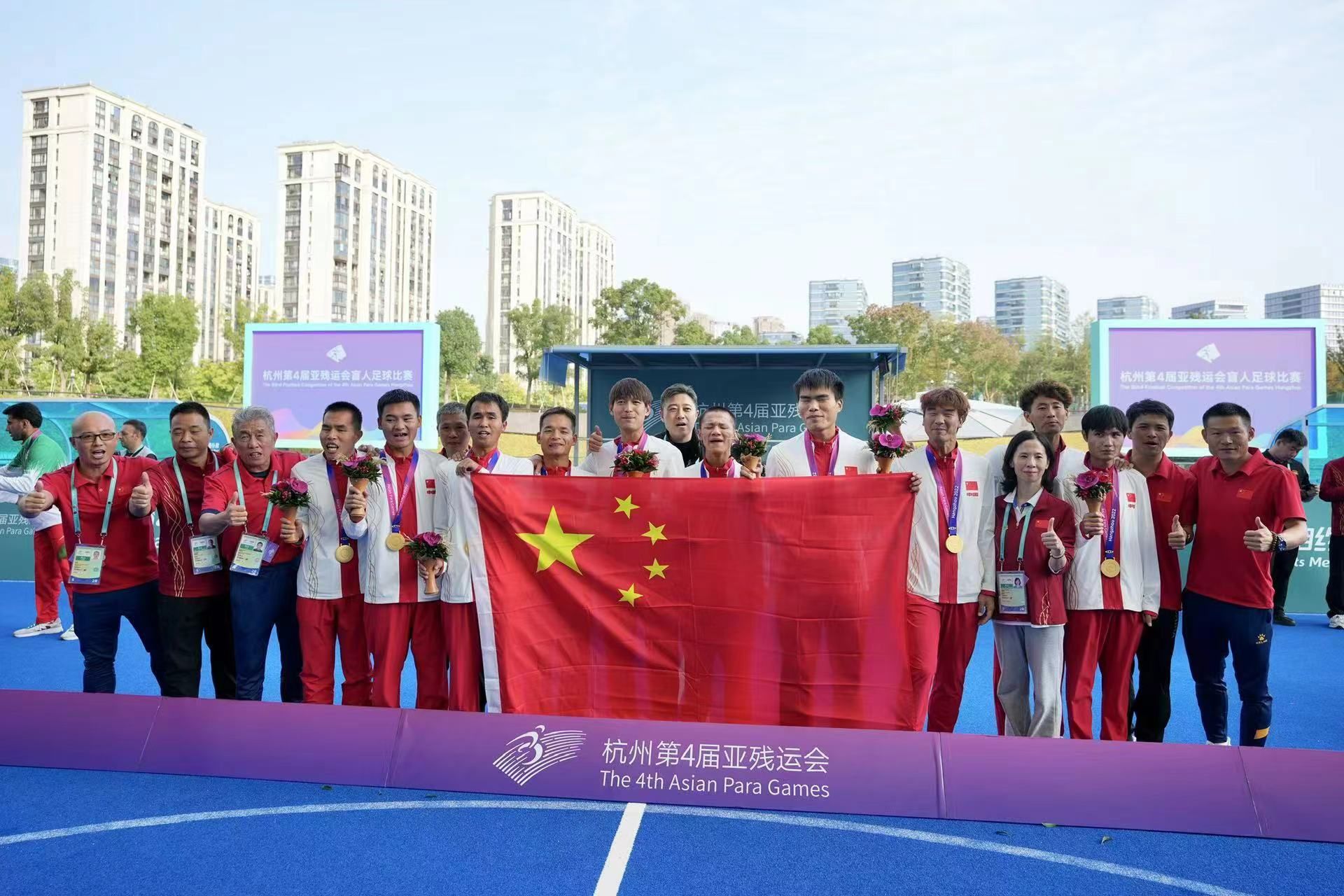 10月23日-28日,第4届亚洲残疾人运动会于浙江杭州举行,共有亚洲44个国家代表团参加了本届运动会。其中有6支国家代表队参加盲人足球比赛角逐,分别是日本、伊朗、泰国、马来西亚、印度以及东道主中国。比赛中,中国队以四胜一负小组第二名进入决赛,在决赛点球大战中2:1战胜伊朗,时隔13年再次夺得亚残运会金牌。金年会体育教学部李进老师作为教练组成员,为中国队夺得历史第二枚金牌贡献了福商力量,为祖国争得了荣誉。