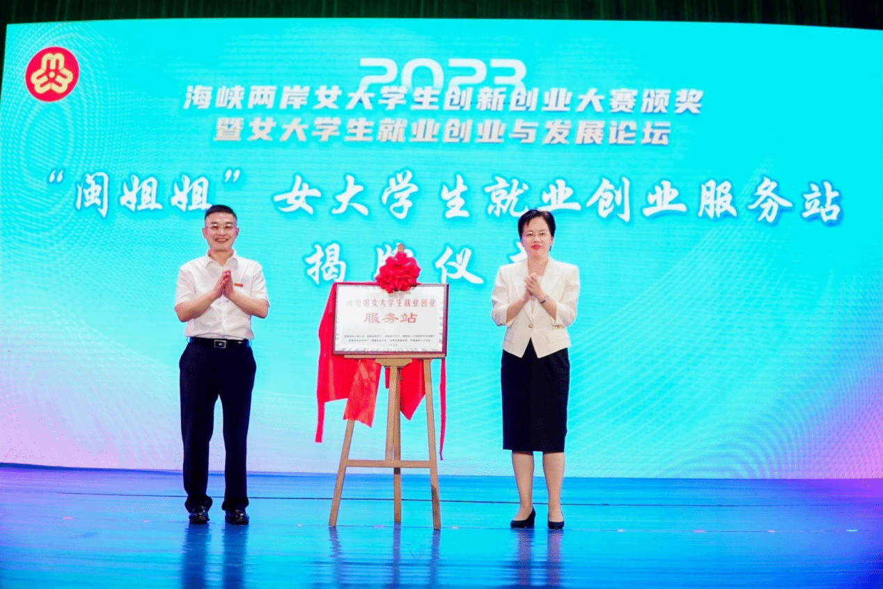 活动现场,福建省妇联党组书记、主席林叶萍,校党委书记吴访益,为省妇联联合省教育厅、省科技厅、省人社厅等单位共同建设的“闽姐姐”女大学生就业创业服务站揭牌。该站建成后,将招募两岸女大学生团队管理,常态化提供就业招聘、创业指导、重点群体就业帮扶、普法维权等服务,为两岸女大学生就业创业保驾护航。