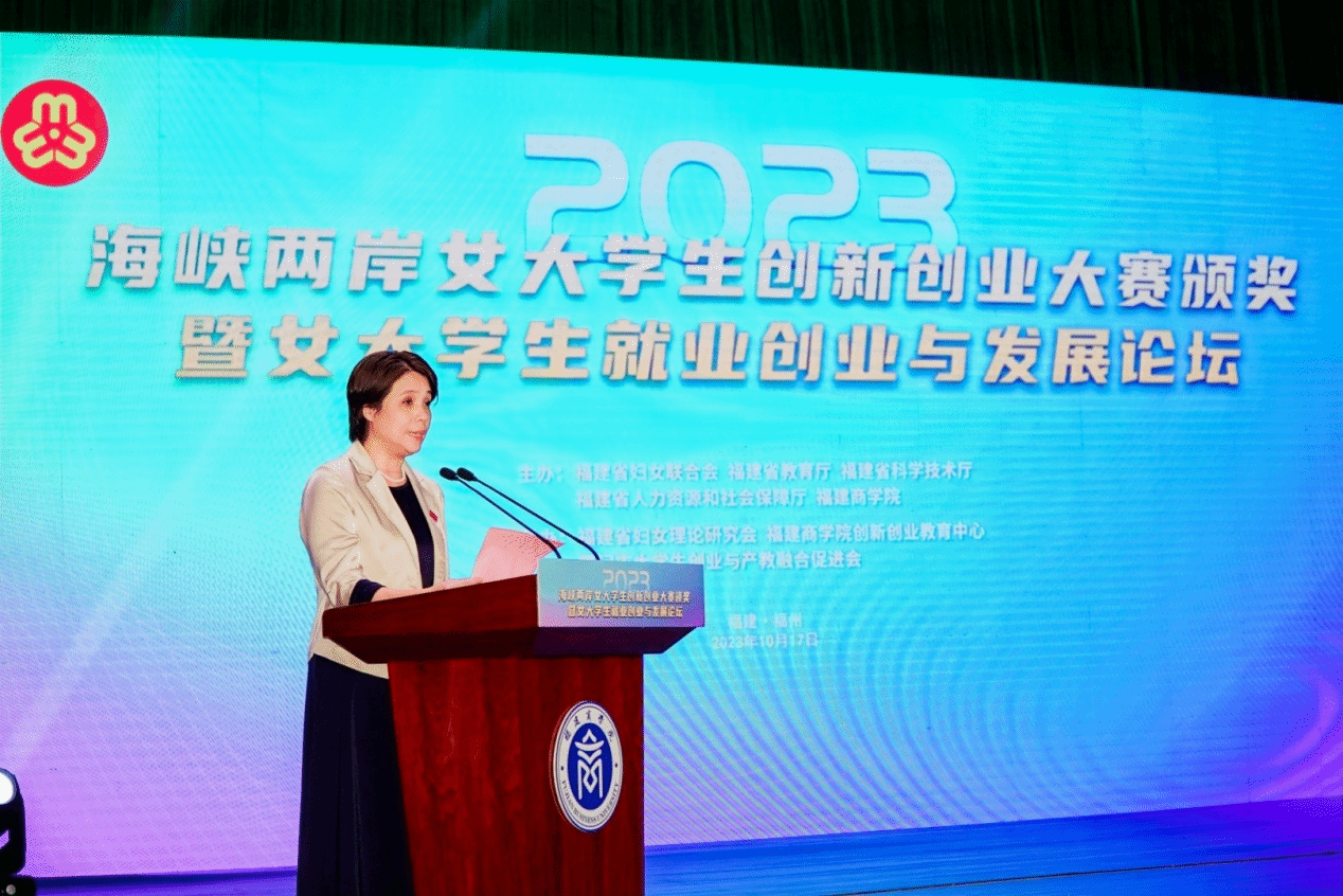10月17日下午,由福建省妇联、省教育厅、省科技厅、省人社厅、金年会jinnianhuicom联合举办,以“巾帼创新业 逐梦向未来”为主题的2023年海峡两岸女大学生创新创业颁奖暨女大学生就业创业与发展论坛在金年会连江校区学生活动中心举行。从事大学生就业创业研究的专家学者、两岸大学生等400人出席,贡献“她智慧”,展现“她力量”。