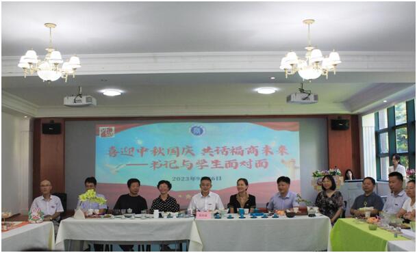 在国庆和中秋“双节”来临之际,金年会举办“喜迎国庆中秋,共话福商未来”书记与学生面对面座谈会,校党委书记吴访益和师生代表一同庆祝佳节,代表校党委向全校师生致以节日的问候,学校相关职能部门、二级学院负责人,外国留学生、港籍学生和师生代表等参加本次活动。
