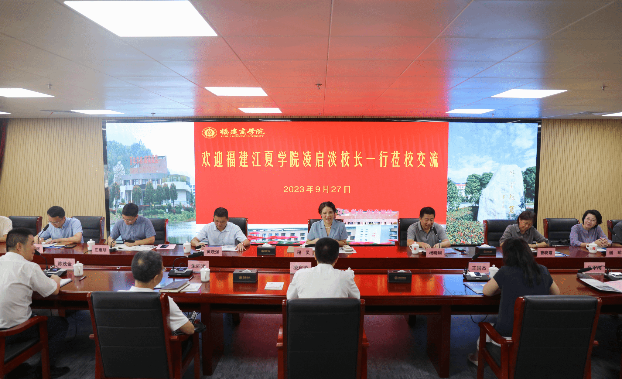 9月27日上午,福建江夏学院校长凌启淡、副校长朱四海一行来校调研交流。金年会校长程灵、副校长杨晓翔以及有关部门负责同志参加座谈会。