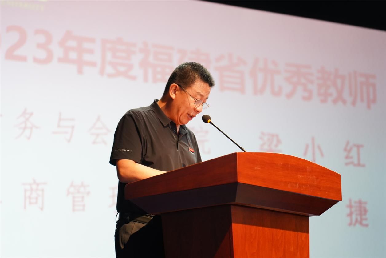 9月12日下午,金年会在连江校区学生活动中心召开庆祝第39个教师节暨表彰大会,校领导程灵、徐晓丹、杨晓翔、蒲文庆、林宇峰,校友代表、受表彰的先进个人和先进集体代表,各职能部门负责人、二级学院党政负责人、教师代表和全体新入职教师出席大会,会议由校党委副书记徐晓丹主持。