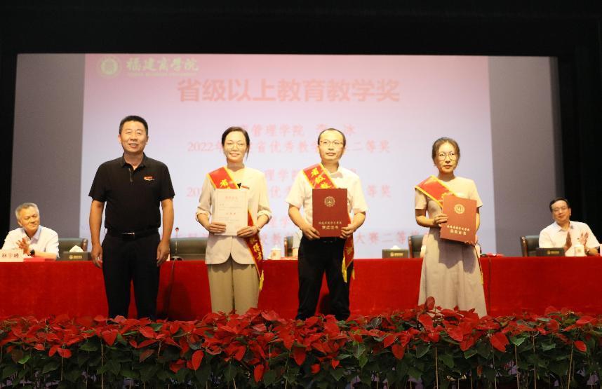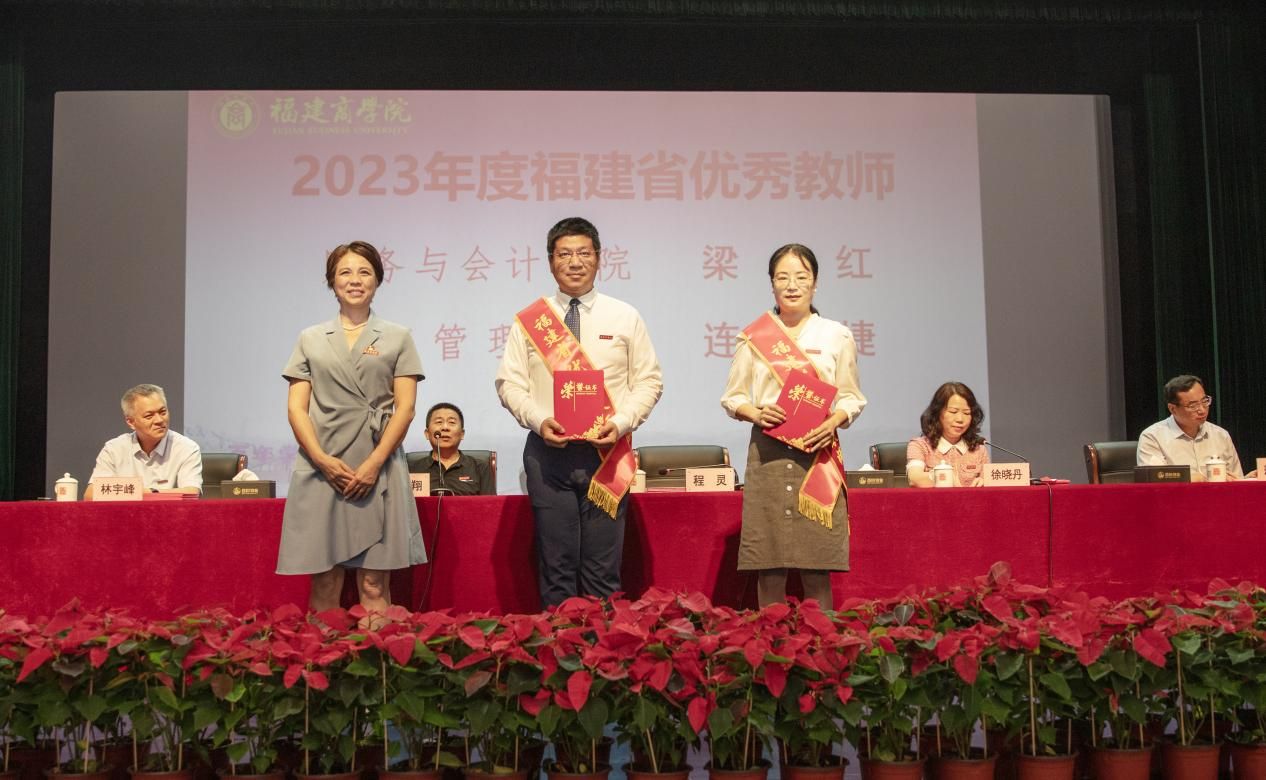 大会对荣获“福建省优秀教师”称号的梁小红、连捷,获得省级以上教育教学成果奖的李冰、陈柏良、陈颖,获得2023年度校友奖教金优秀教师奖、优秀团队奖、优秀青年教师奖的个人和团队进行了表彰奖励,并为新晋高级职称人员颁发聘书。程灵为慷慨捐资的校友代表陈英、梁赞云、陈舟、林辉、张振敏、林毅鹏、陈祥庚、江银洲等颁发了捐赠证书。