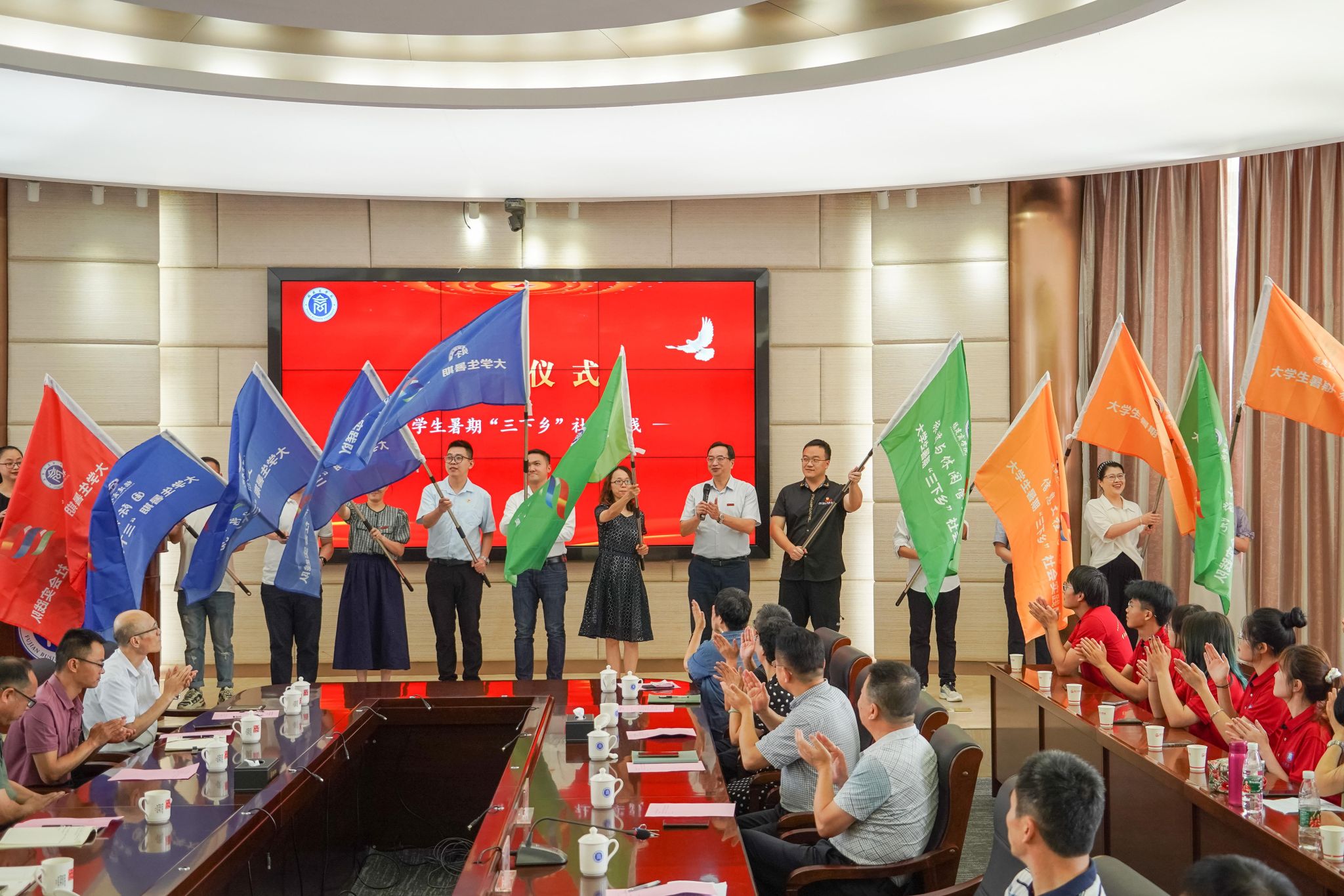 副校长蒲文庆为暑期“三下乡”社会实践队代表授旗