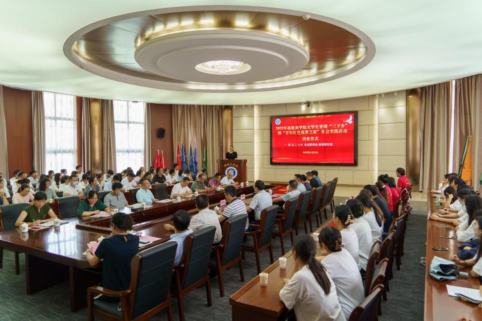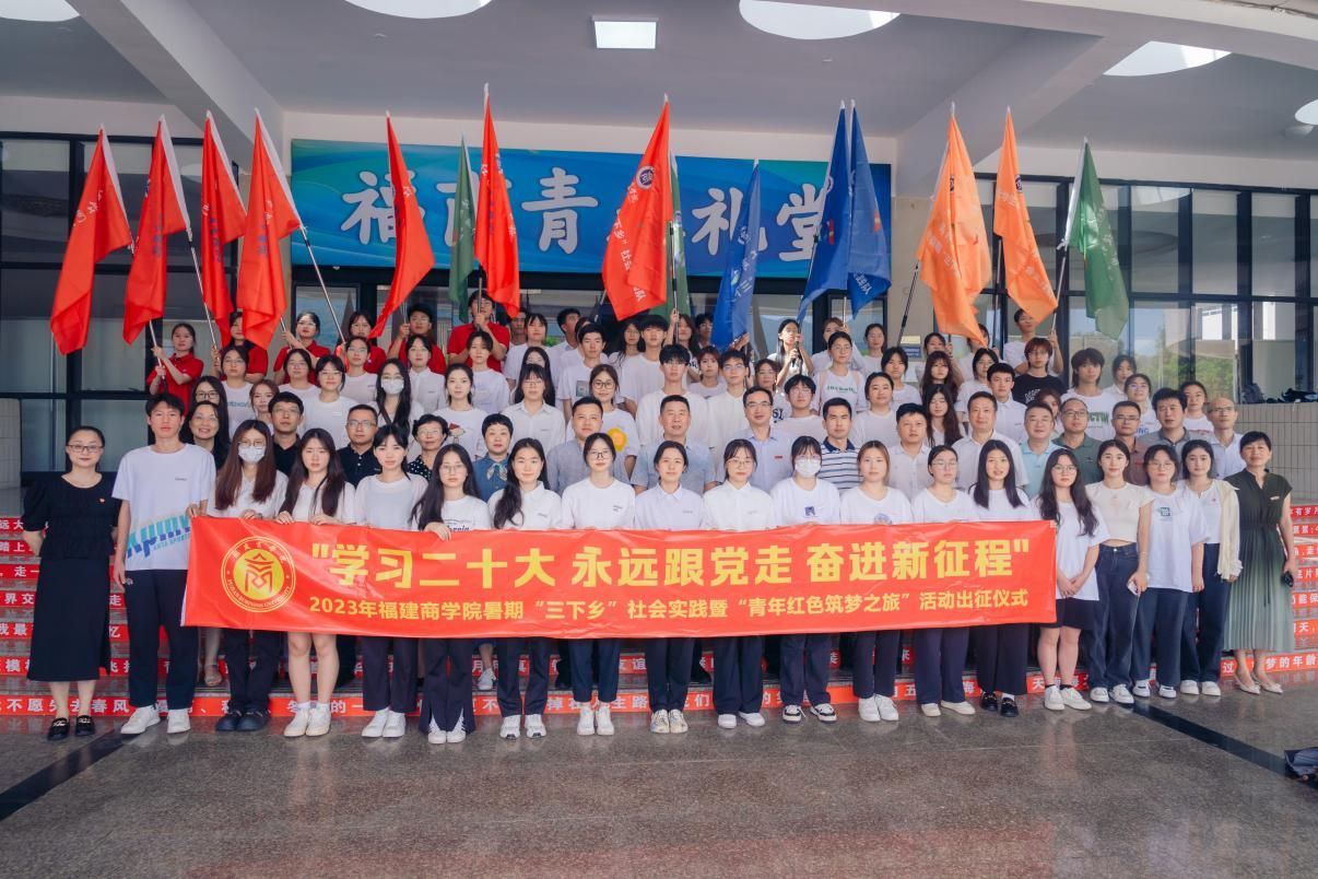 6月20日下午,金年会2023年大学生暑期“三下乡”暨“青年红色筑梦之旅”社会实践活动出征仪式在连江校区举行。副校长杨晓翔、蒲文庆出席出征仪式。有关部门负责人、各二级学院党委副书记和团委负责人,校团委、通识教育学院有关人员,实践队指导教师和队员代表等参加仪式。