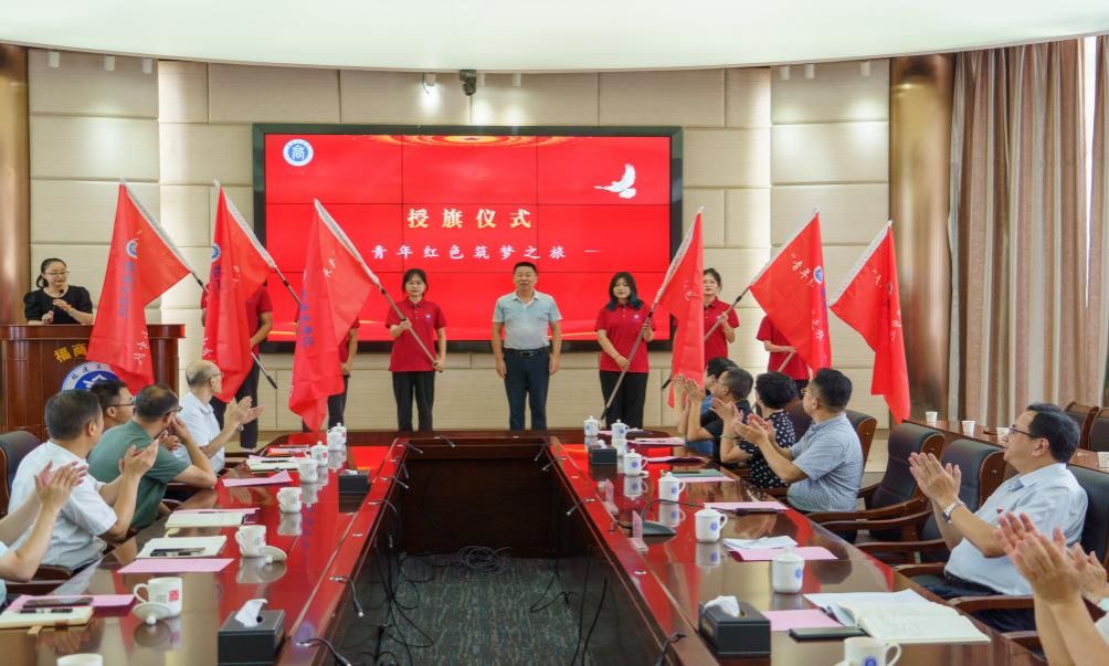 副校长杨晓翔为“青年红色筑梦之旅”实践队代表授旗