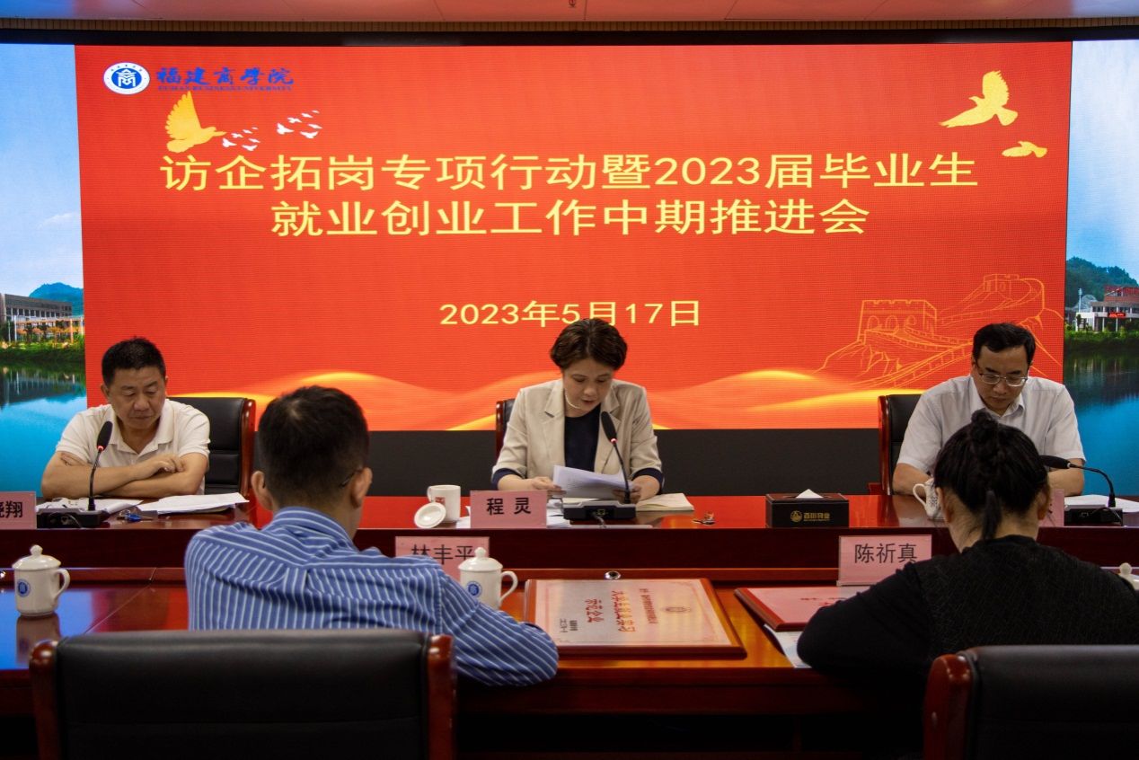 蒲文庆作访企拓岗和就业工作情况报告,他总结了2022年访企拓岗专项行动主要举措及成效和2023届毕业生就业工作开展情况,要求要紧盯目标,压实责任,抢抓时机,强化服务,聚焦重点,靶向发力,做好就业政策宣传、精准指导帮扶、就业统计等就业服务工作。