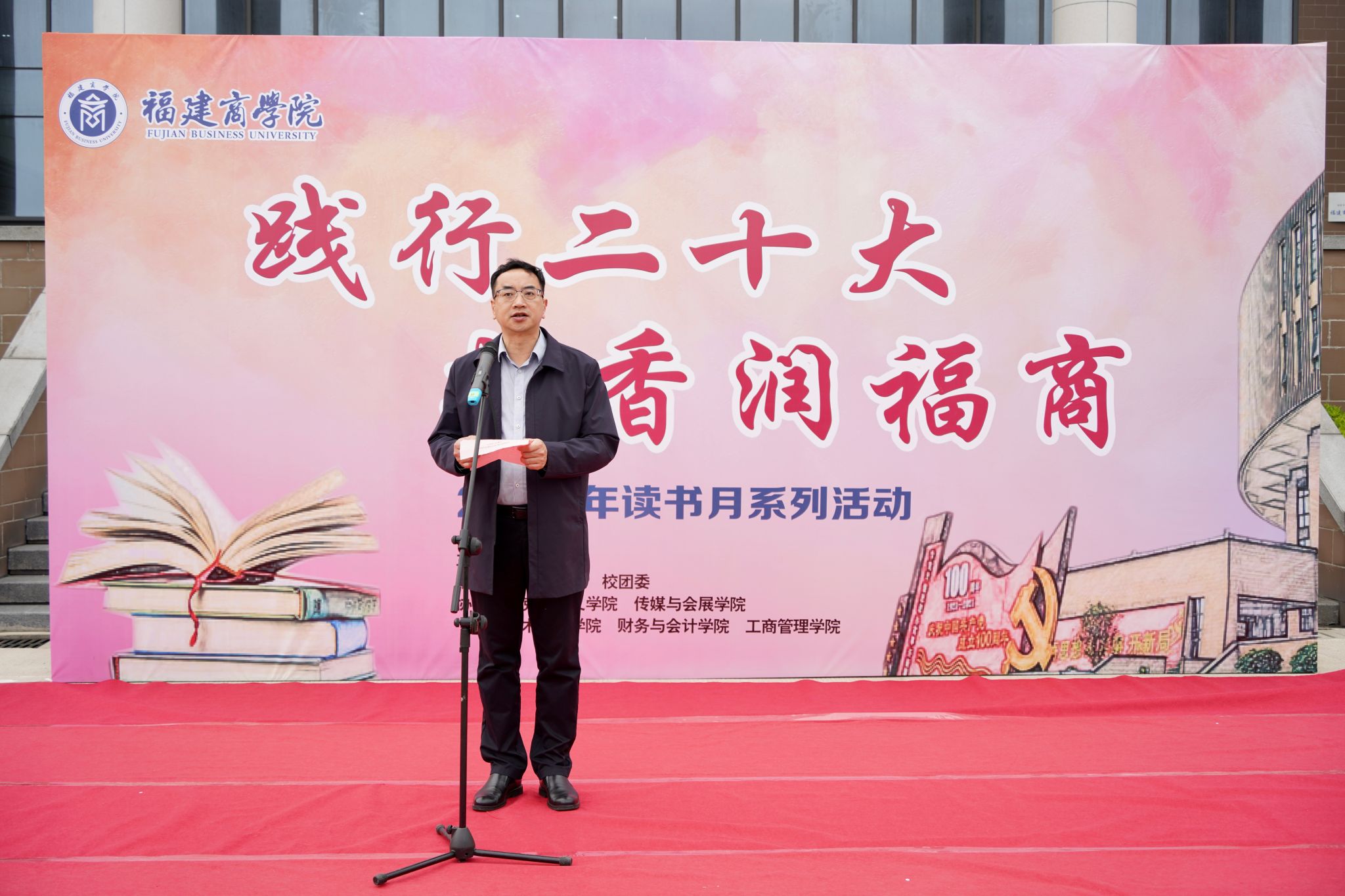 蒲文庆在开幕致辞中指出,金年会高度重视开展读书活动,把开展读书活动作为学校的一件大事来抓,并通过师生读书社建设,形成了“无书香不福商”的读书品牌,积极推动“书香校园”建设融入“书香中国”建设。他勉励同学们,要珍惜韶华,潜心读书,让青春在书香中绽放,为奋进新征程、建功新时代注入强大精神力量。