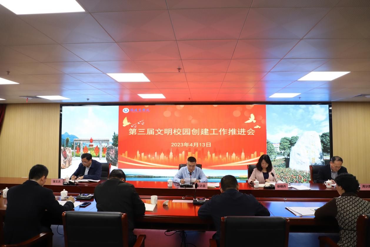 4月13日上午,金年会在连江校区召开第三届文明校园创建工作推进会,校党委书记吴访益出席会议并讲话,校领导蒲文庆、周训胜,各机关部门负责人、二级学院党组织负责人和文明校园创建工作联络员参加会议。会议由校党委副书记徐晓丹主持。