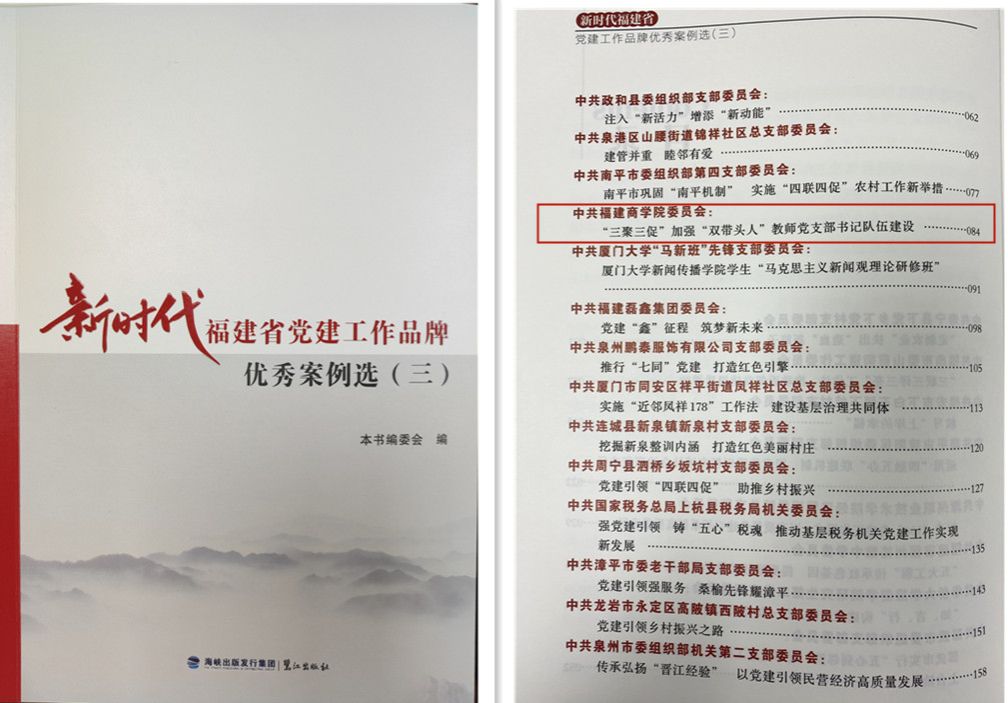 日前,《新时代福建省党建工作品牌优秀案例选》丛书正式出版发行。金年会报送的《“三聚三促”加强“双带头人”教师党支部书记队伍建设》案例脱颖而出,入选该丛书。