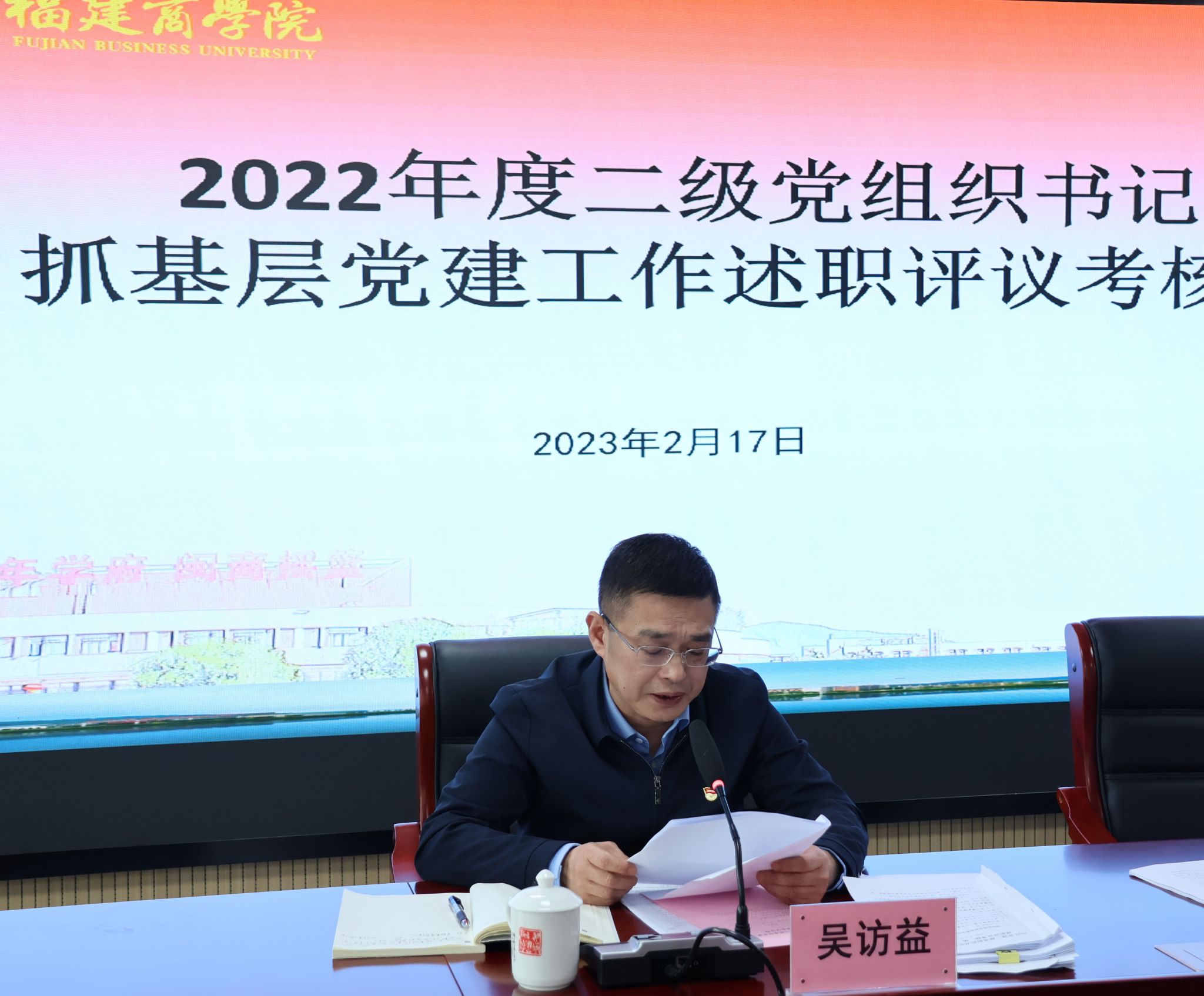 2月17日下午,金年会2022年度二级党组织书记抓基层党建工作述职评议考核会在连江校区举行。全体在家校领导、机关党群部门负责人、二级学院党政负责人、人大代表、政协委员代表、学生代表等参加会议。会议由校党委副书记徐晓丹主持。