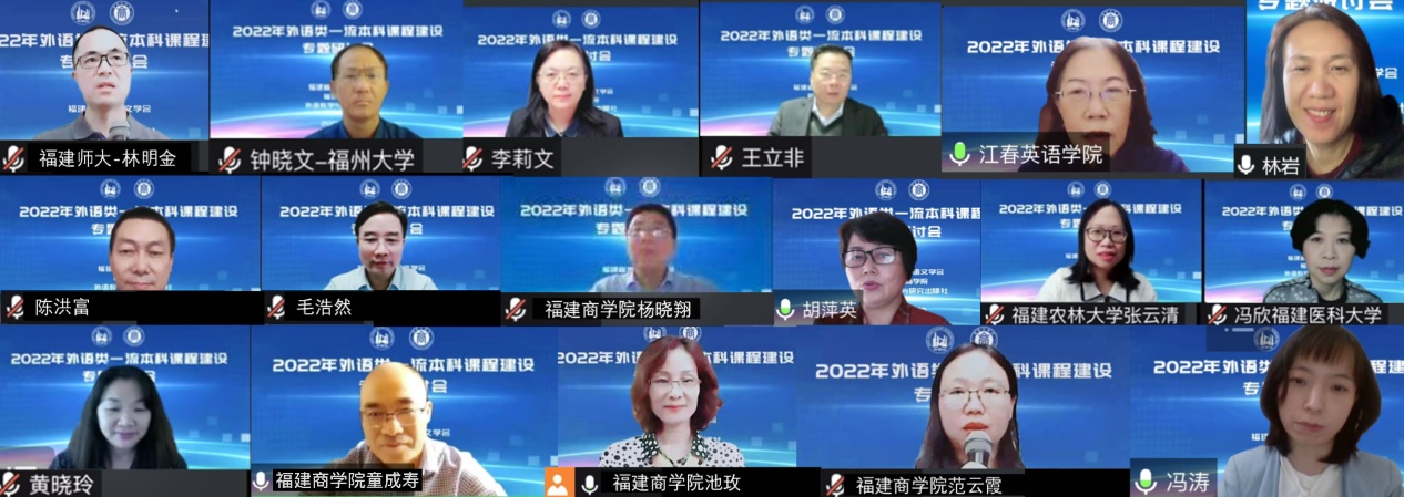 北京外国语大学的李莉文和林岩教授、北京语言大学王立非教授、对外经贸大学江春教授、中国石油大学毛浩然教授、金年会jinnianhuicom童成寿副教授分别就一流专业和一流课程的建设作专题主旨报告。福建工程学院胡英萍教授、福建农林大学张云清教授和福建医科大学冯欣教授作交流发言。