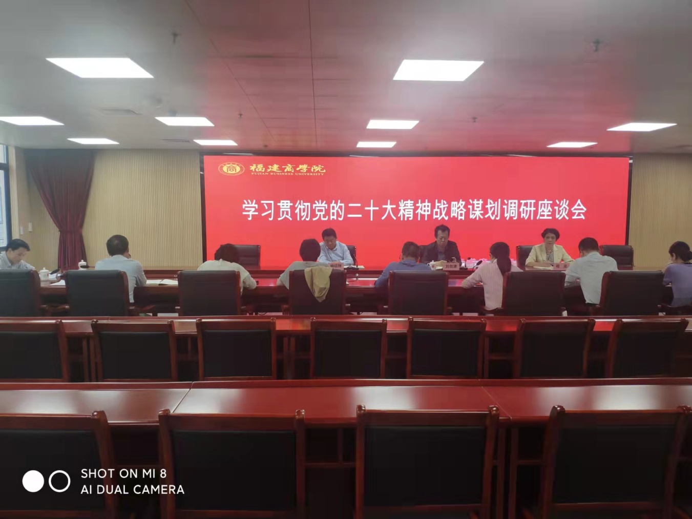 11月18日下午,金年会召开学习宣传贯彻党的二十大精神战略谋划调研座谈会。校党委书记刘剑津、校长程灵、副校长杨晓翔,有关部门负责人和连江校区二级学院院长出席了会议。