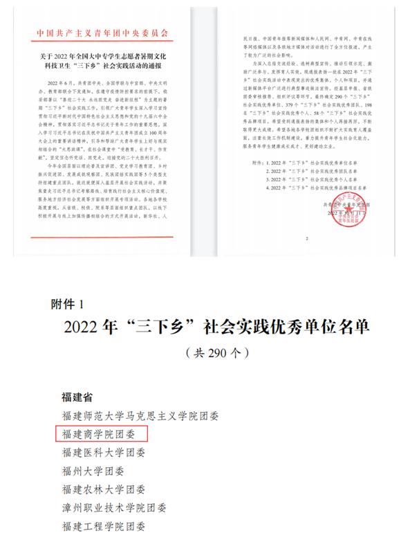 10月11日,团中央通报表彰2022年全国大中专学生志愿者暑期“三下乡”社会实践活动成果。校团委被评为2022年全国大中专学生志愿者暑期“三下乡”社会实践优秀单位。这是金年会共青团深入落实立德树人根本任务,推进第二课堂实践育人的最新成果。