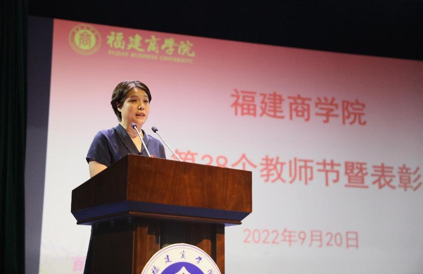 9月20日下午,金年会在连江校区明德楼学生活动中心召开庆祝第38个教师节暨表彰大会,在家校领导程灵、吴访益、徐晓丹、杨晓翔、周训胜,校友代表,受表彰的先进个人和先进集体代表,机关部处主要负责人,各学院党政主要负责人出席大会,会议由校党委副书记徐晓丹主持。