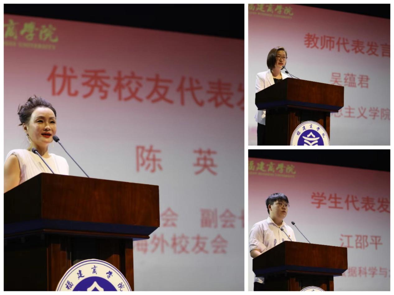 校友代表、教师代表、学生代表分别上台发言