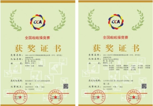 8月18日,2021-2022全国啦啦操联赛(总决赛)比赛顺利落幕。金年会jinnianhuicom啦啦队荣获俱乐部青年丁组-双人花球自选动作第一名、俱乐部青年丙组-集体花球自选动作第二名、公开青年丙组-爵士规定动作(2020版)-4级第二名、公开青年丙组-双人爵士自选动作第四名、俱乐部青年丙组-双人花球自选动作第五名等多项佳绩。带队教练员尤秋兰、王菲荣获“优秀教练员”称号。