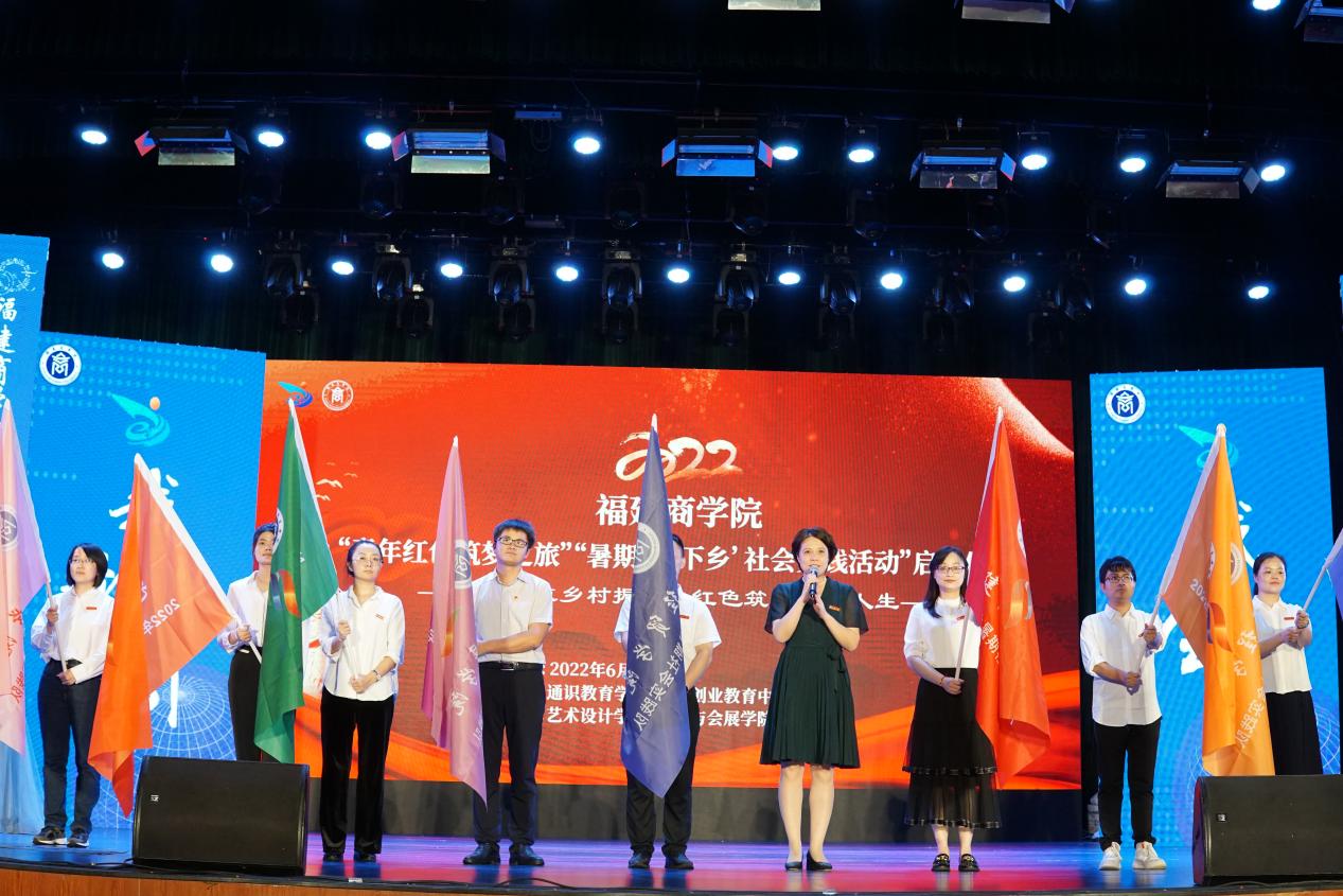 校长程灵为“暑期‘三下乡’社会实践活动”团队代表授旗