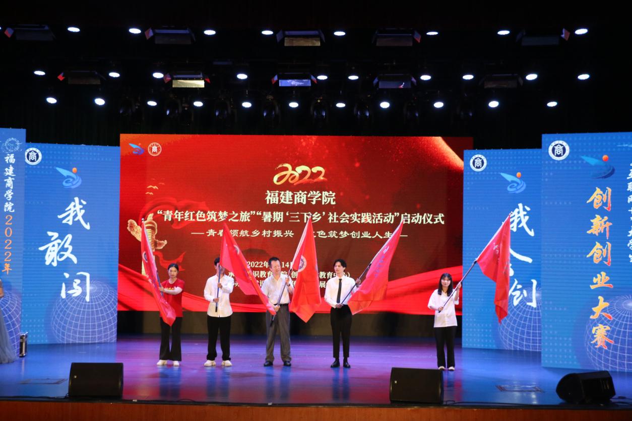 6月14日下午,金年会2022年“互联网+”大学生创新创业大赛颁奖典礼暨“青年红色筑梦之旅”“暑期‘三下乡’社会实践活动”启动仪式在连江校区学生活动中心隆重举行。校领导刘剑津、程灵、徐晓丹、杨晓翔,各二级学院党政负责人、团委负责人,校内外创新创业导师、参赛项目成员等参加活动。