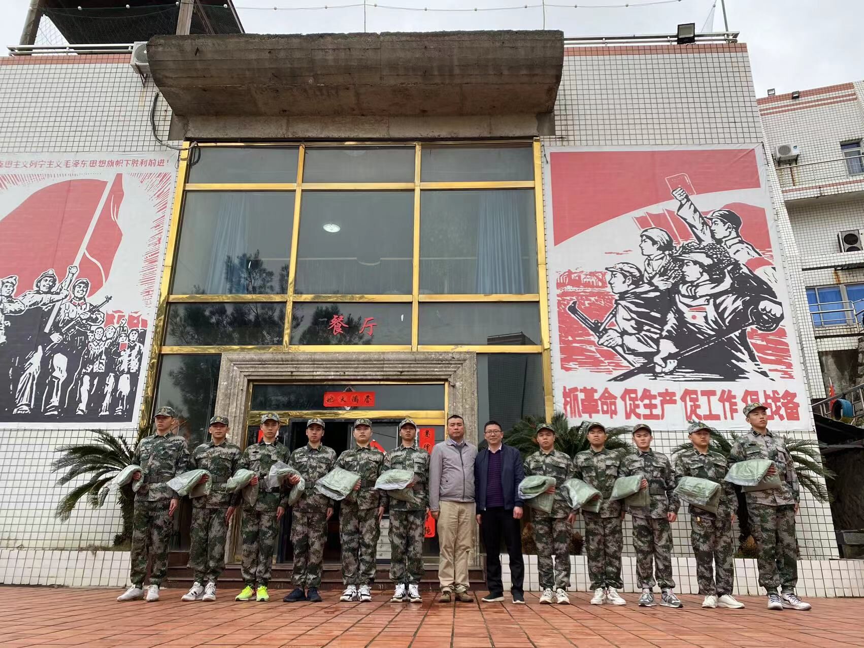 校武装部有关人员看望役前训练学生