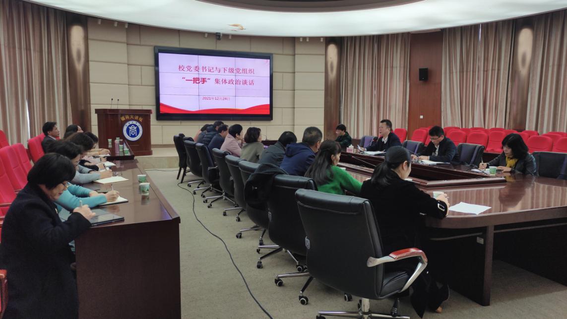 为进一步贯彻落实《中共中央关于加强对“一把手”和领导班子监督的意见》,加强党组织自上而下的监督,持续强化领导干部政治担当,更好地肩负起党赋予的职责使命,12月24日上午,校党委书记刘剑津在金年会连江校区视频会议室同二级学院党政“一把手”开展集体监督谈话。
