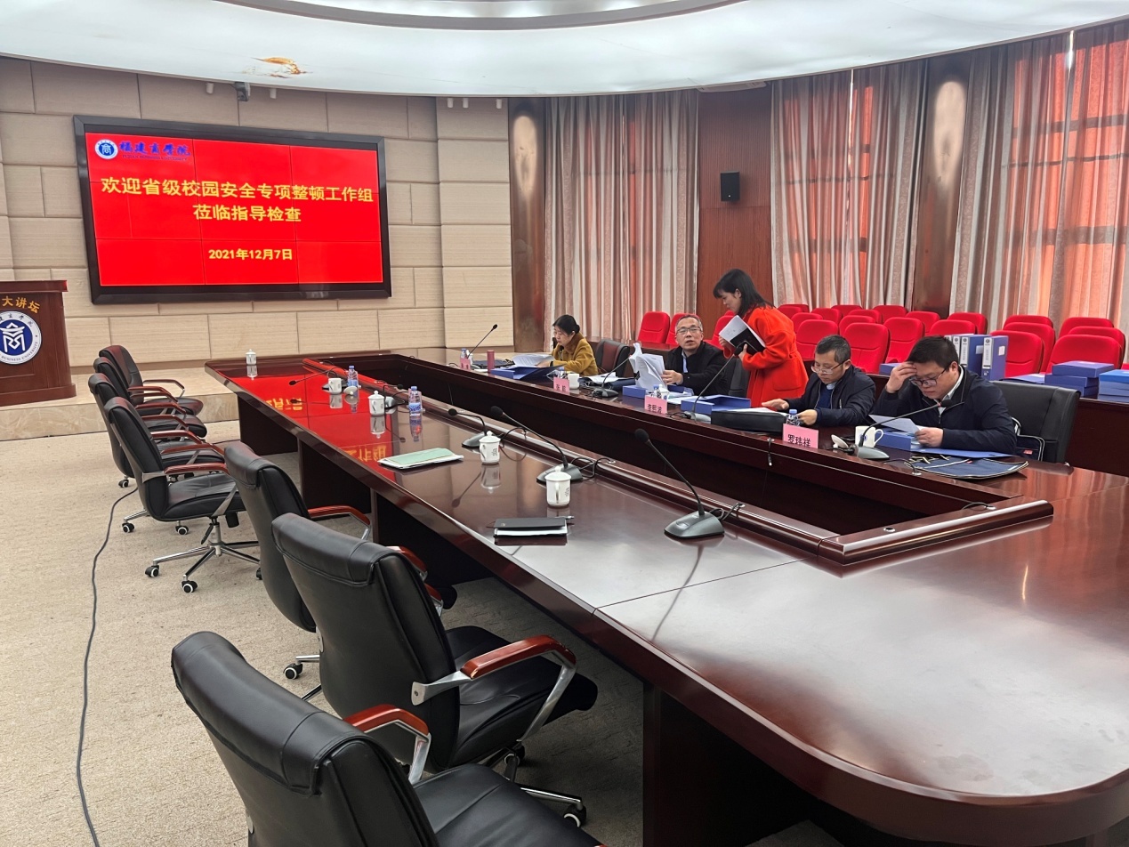 12月7日下午,校园安全专项整顿省级检查组对金年会安全专项整顿工作落实情况、迎接“国检”准备情况进行调研检查,检查组由省市场监管局餐饮处二级调研员张航、省教育厅规划处副处长李熙波、省职业技术教育中心教学研究部副主任陈锋、省教育厅高教处干部罗玮祥组成。