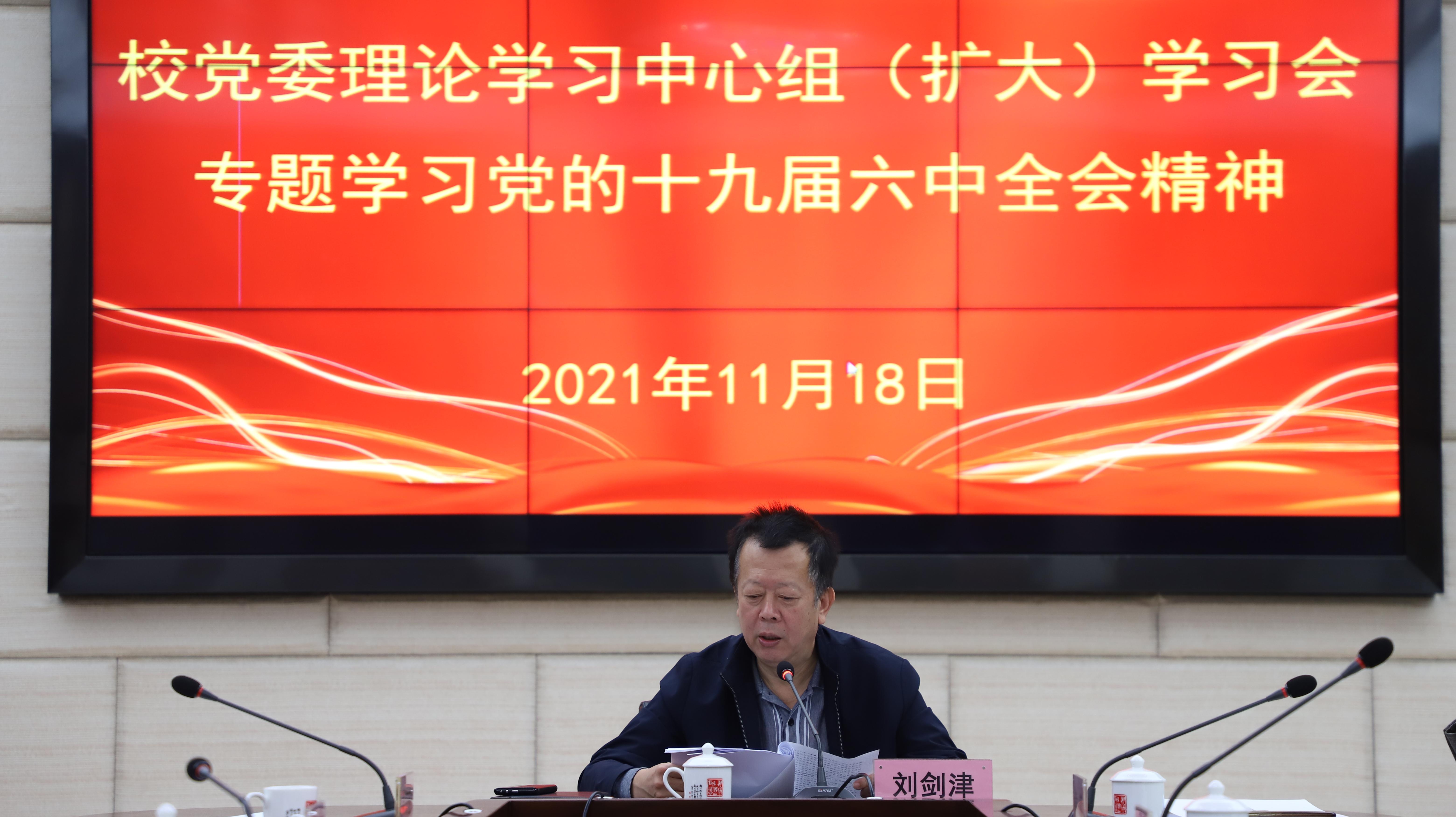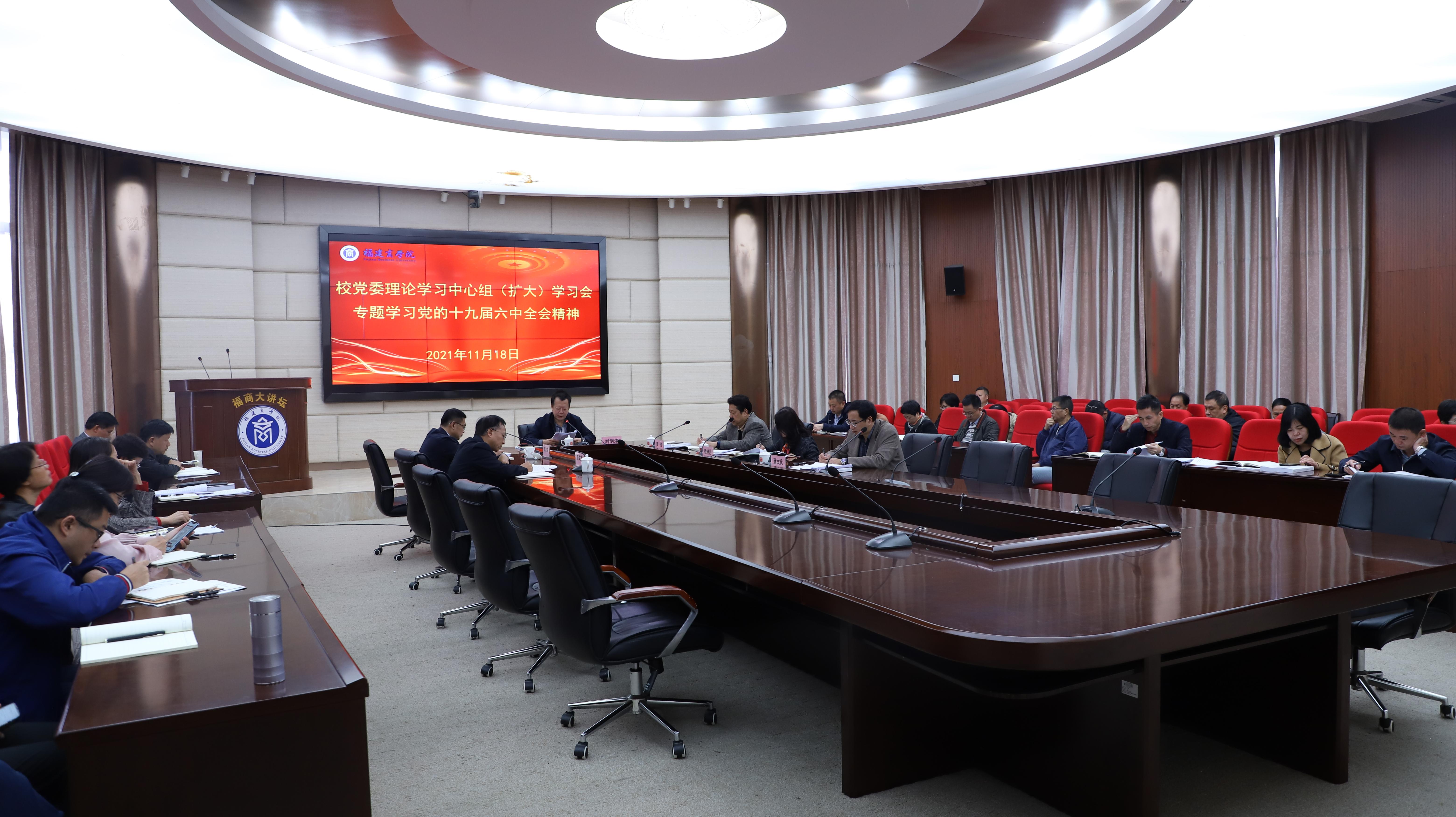 11月18日上午,金年会召开党委理论学习中心组(扩大)学习会,专题学习党的十九届六中全会精神,认真贯彻11月13日省委常委会(扩大)会议要求,并对学校学习贯彻党的十九届六中全会精神各项工作进行部署。校党委书记刘剑津主持会议并作主题发言,校领导黄斌、吴访益、徐晓丹、康文杰、蒲文庆出席会议,各部处(室、中心)负责人、各二级学院党政主要负责人列席学习会。