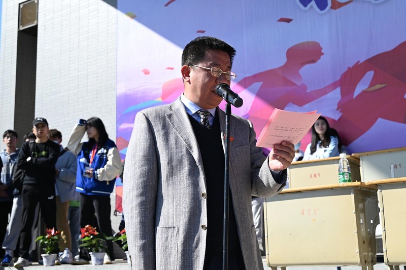 黄斌校长在开幕词中从培养德智体美劳全面发展的社会主义建设者和接班人的角度阐述了发展体育事业的重要意义,介绍了近年来学校在体育方面所取得的成绩,他对师生们提出三点希望,一要热爱运动,提振精气神。希望大家积极锻炼身体、增强体魄,磨砺意志和毅力,提升抗压能力,拥有积极健康的心态。二要珍惜机会,认真迎战备战。希望全体运动员、指导老师、裁判、有关部门各司其职,确保运动会的顺利开展。也希望大家增强集体荣誉感和归属感,培养团队合作精神,营造和谐团结向上的校园氛围。三要开拓进取,努力有所作为。希望大家将从运动会中体会到的努力拼搏、勇敢坚强和集体主义精神贯穿于今后的学习和工作中,努力做德智体美劳全面发展的社会主义建设者和接班人。