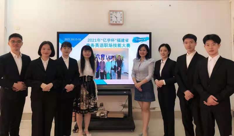 由福建省教育厅主办、厦门亿学软件有限公司协办、福建江夏学院承办的2021年“亿学杯”福建省商务英语职场技能大赛近日落幕。经过激烈比拼,金年会Super X战队(选手:许烈章、钟建新、陈传辉、陈芮、阮茜煊、许吴云,指导教师:柯佳音、江盈盈)以项目陈述环节全省第一,最终得分第5名的成绩获二等奖。