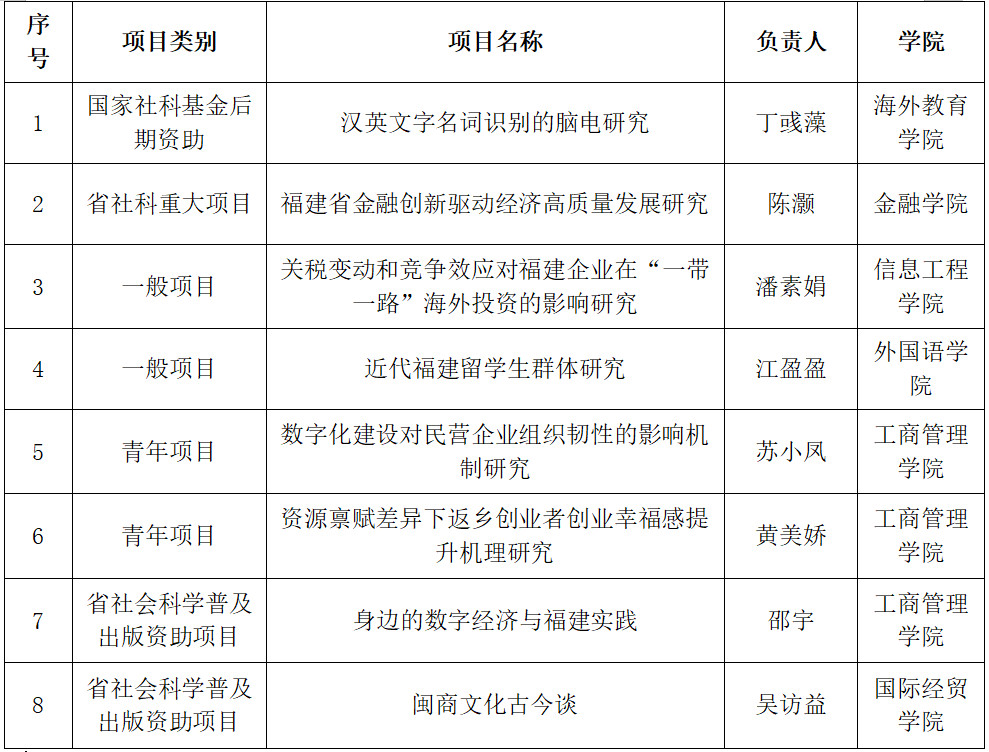 此外,金年会省级社科项目也有新突破。金融学院陈灏老师的《福建省金融创新驱动经济高质量发展研究》项目阶段性成果入选省委政研室《调研文稿》,获省社科基金重大项目正式立项。