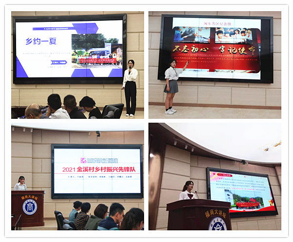 会上,共有25支团队进行了成果汇报。其中,6支团队围绕党史学习、4支团队围绕“追寻红色足迹,献礼建党百年”主题、8支团队围绕乡村振兴、1支团队围绕禁毒防艾及其他主题展开汇报。今年学校围绕“永远跟党走、奋进新时代”活动主题,首次将社会实践活动按照“目标精准化、工作系统化、实施项目化、传播立体化”和“按需设项、据项组团、双向受益”的工作原则,鼓励广大同学围绕党史学习教育,把“四史”学习教育与社会实践深度融合,做到学史明理、学史增信、学史崇德、学史力行,把爱国情、强国志、报国行自觉融入新时代追梦征程。25支代表队汇报后,校党委宣传部负责人从“广、新、多、好”四个方面对各代表队实践成果汇报的情况进行点评。