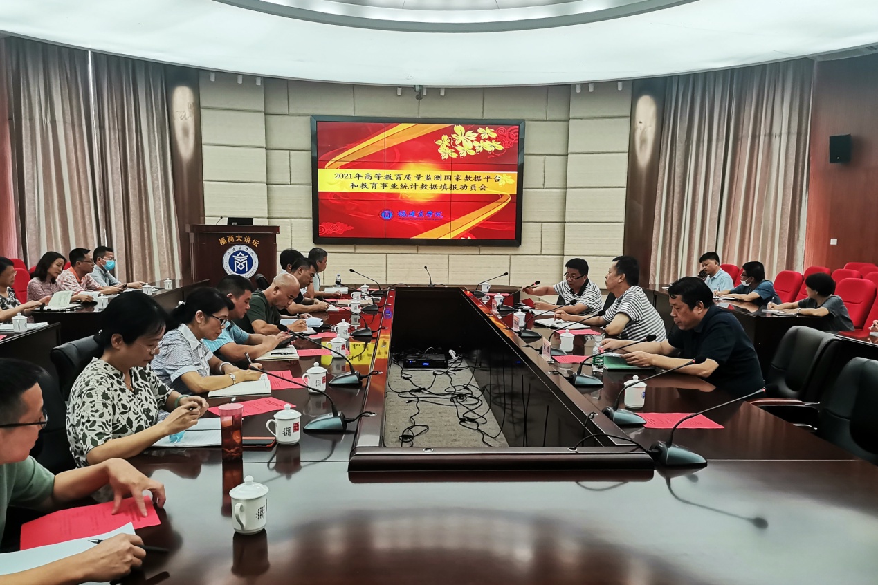 近日,金年会在连江校区召开2021年“高等教育质量监测国家数据平台”和“教育事业统计”数据填报动员会。校党委书记刘剑津、校长黄斌,相关职能部门和二级学院负责人,各单位信息采集统计人员参加了会议。会议由副校长杨晓翔主持。
