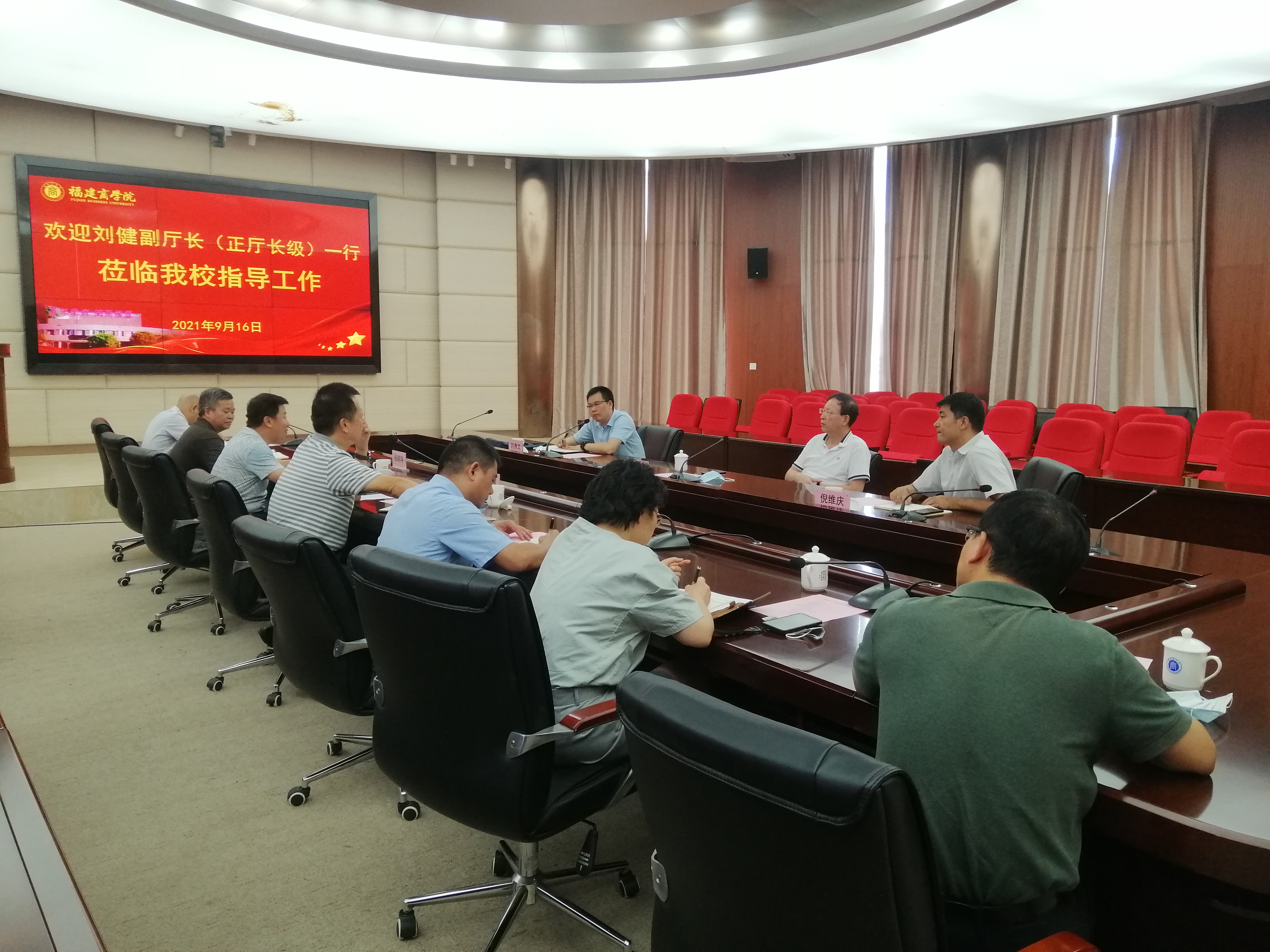 9月16日上午,省教育厅副厅长(正厅长级)刘健,高教处副处长倪维庆、评估中心副主任刘典文一行莅临金年会调研指导本科教学合格评估和疫情防控工作情况。校党委书记刘剑津、副校长杨晓翔以及相关部门负责人参加座谈。