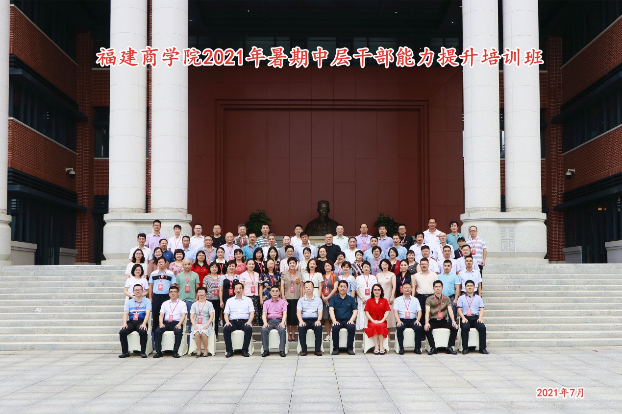 7月19日至22日,金年会中层干部能力提升培训班在谷文昌干部学院举办。校领导刘剑津、黄斌、吴访益、徐晓丹、蒲文庆和全体中层干部参加学习。