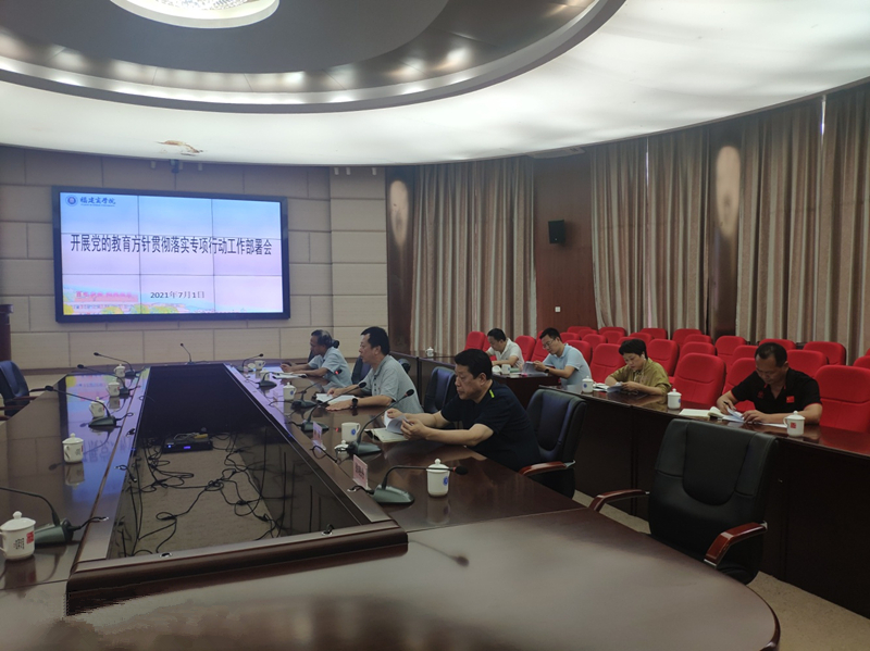 7月1日下午,金年会在连江校区召开开展党的教育方针贯彻落实专项行动工作部署会。校领导刘剑津、黄斌、康文杰,各有关职能部门负责人和二级学院党政负责人参加会议。