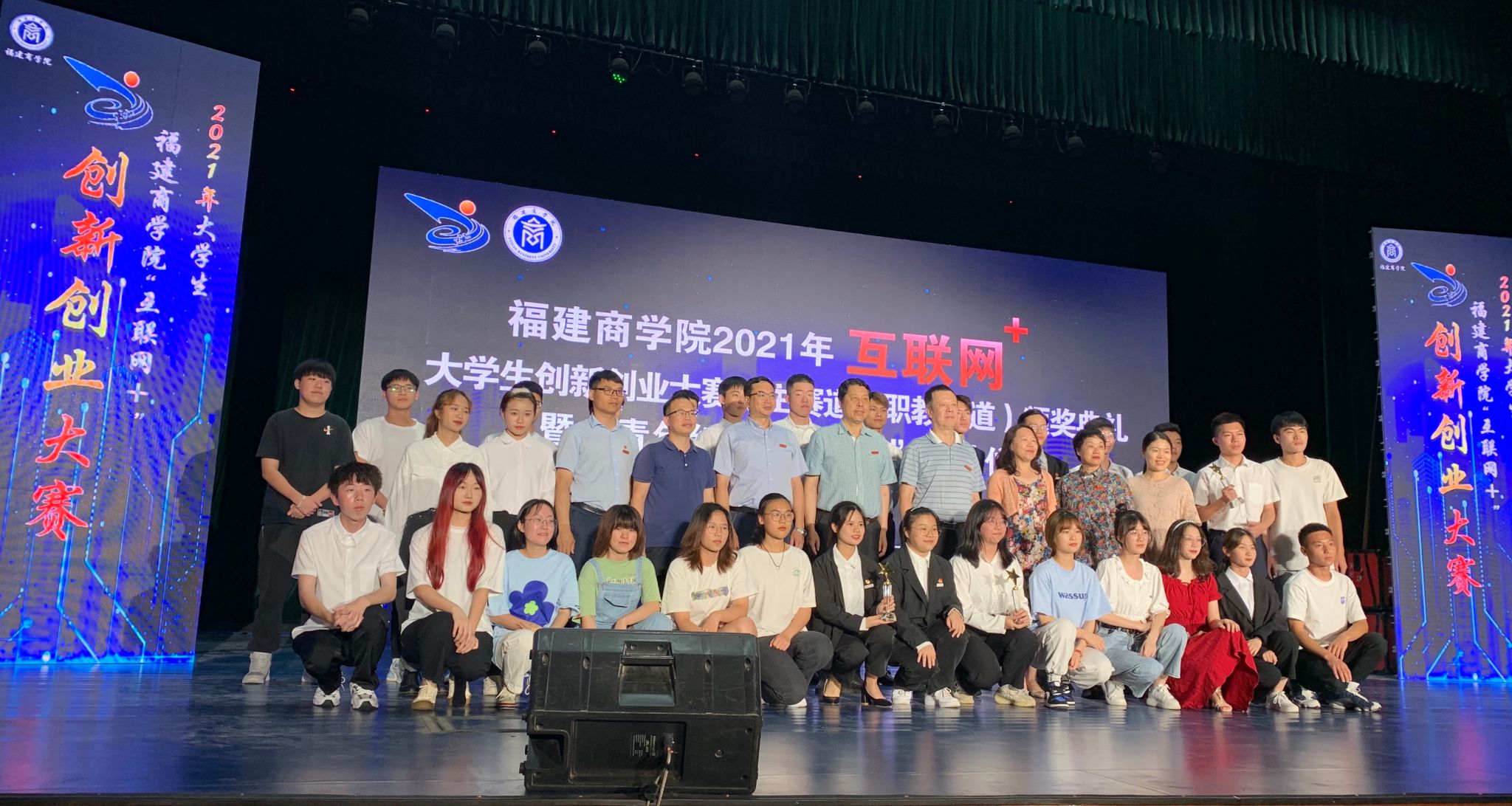 6月22日下午,金年会2021年“互联网+”大学生创新创业大赛主赛道(职教赛道)颁奖典礼暨“青年红色筑梦之旅”启动仪式在连江校区大学生活动中心隆重举行。校领导刘剑津、黄斌、徐晓丹、蒲文庆,各学院党政负责人、团委书记,校内外创新创业导师、参赛项目成员等出席活动。