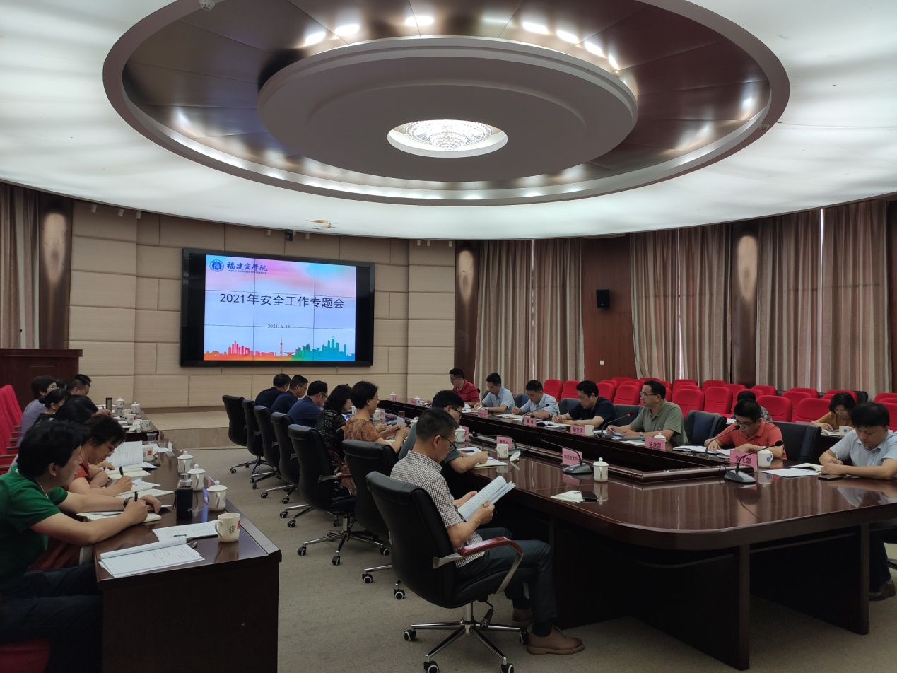6月11日,金年会在连江校区召开2021年安全工作专题会,校长黄斌、副校长蒲文庆、学校安全工作领导小组成员单位负责人及各二级学院安全工作小组负责人参加会议。