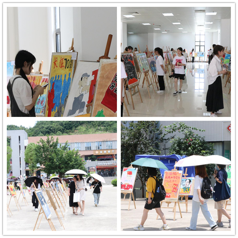 近日,由校党委宣传部、校团委主办,传媒与会展学院、校图书馆承办的“为党献礼,共绘锦绣”百年百画活动分别在连江校区图书馆展览室、青春广场举办。