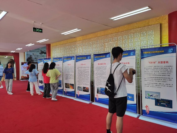 科技成果展由图书馆协办,宣传了中国共产党领导科技发展的历程,以及党的十八大以来以习近平同志为核心的党中央领导实施创新驱动发展战略,我国在航天事业、桥梁和隧道、铁路、生物制药等领域取得的卓越成就。通过观看图片,师生从中体验各种新技术、新产品、新应用。