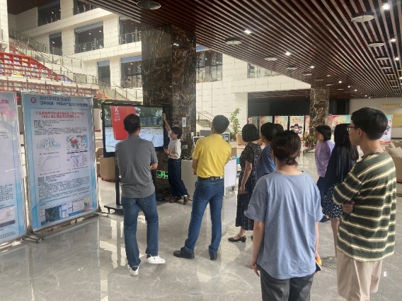 传媒与会展学院、艺术设计学院、信息工程学院、金融学院、国际经贸学院、海外教育学院、工商管理学院等七个学院以图片、视频等方式展示了本院师生在科技创新、创意设计方面取得的成果,营造良好的创新氛围,激发创新创业活力。其中,信息工程学院带来的“基于VR技术的无线网络优化虚拟仿真实验教学项目”极具吸引力,师生通过观看视频体验各种虚拟教学场景,感受视觉的冲击,加上声效带来身临其境的感受,让大家感受到科技改变生活的魅力。