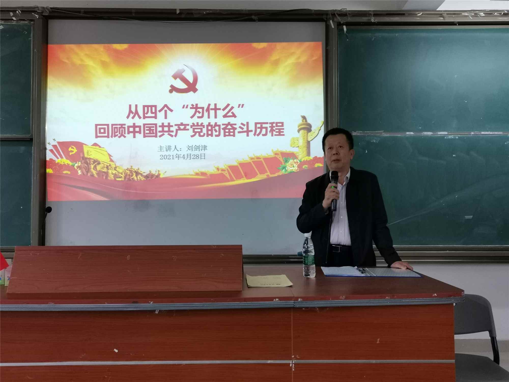 刘剑津在授课中倡议同学们要用好学校所在地的党史资源,鼓励学生利用课余时间到红色革命纪念地多走、多看、多学,在学习、实践中加深对百年党史的认识和理解,坚持和传承中国共产党的优秀品格、革命精神,实现内化于心、外化于行,自觉担当起全面建设社会主义现代化国家的重任。