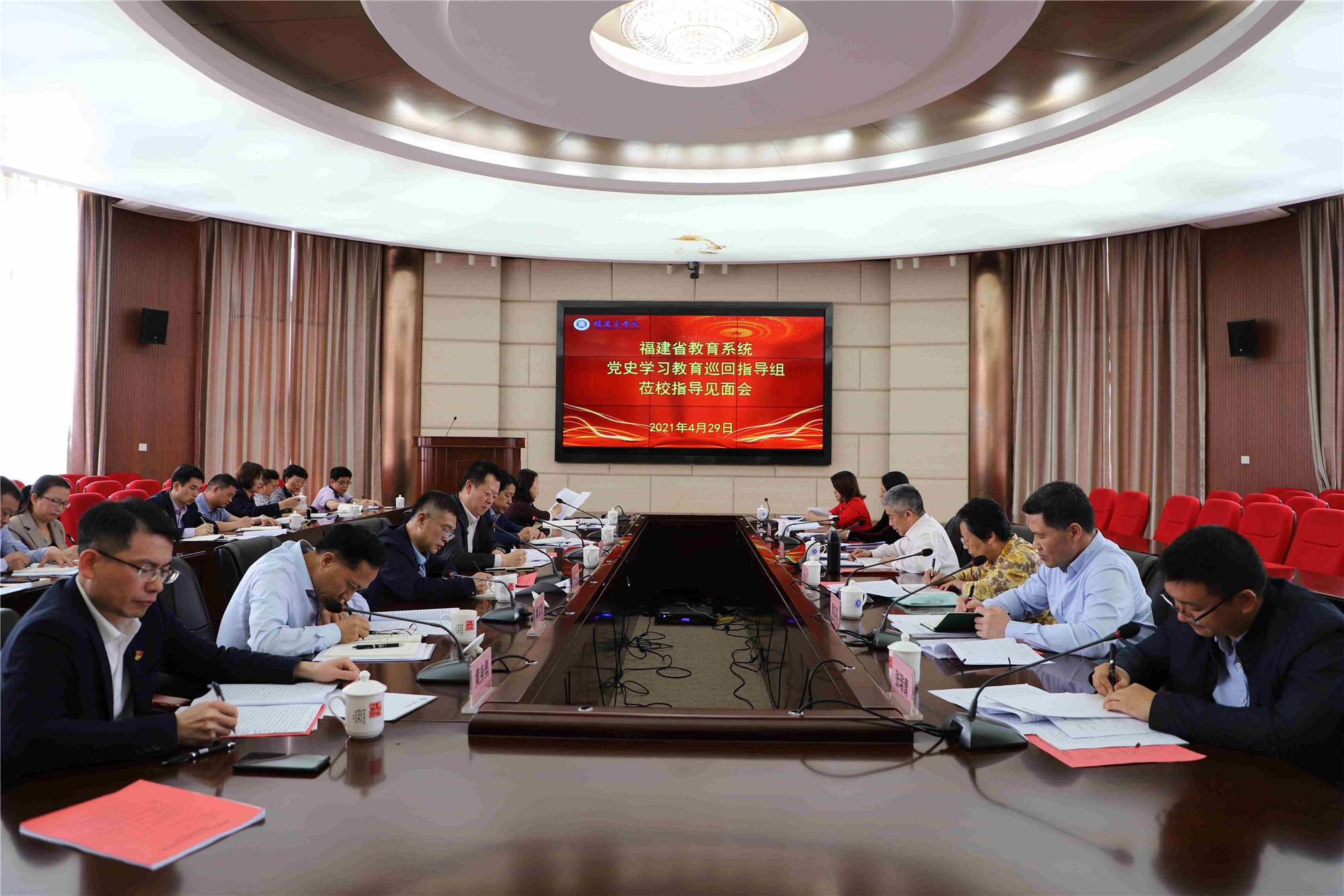 郑才木组长充分肯定了学校党史学习教育开展成效。他指出,学校党委政治站位高,“三个强化”的工作举措紧扣党史学习教育重点,特色鲜明、亮点突出。郑才木组长对学校下一阶段深入推进党史学习教育提出指导意见。一要进一步强化责任意识,加强组织领导,推进学校党史学习教育往深里走往实里走。要深刻认识高校党委是学校党史学习教育的组织者、落实者,切实把党史学习教育抓深抓实,坚持高标准高质量推进党史学习教育。二要进一步把党史学习教育同深入学习习近平新时代中国特色社会主义思想相结合。要认真学习领会好、贯彻落实好习近平总书记关于党史学习教育的重要讲话精神和习近平总书记来闽考察重要讲话精神,以实际行动、实际成效不断增强“四个意识”、坚定“四个自信”、做到“两个维护”。三要进一步深化对党的性质宗旨的认识,开展好“为师生办实事”实践活动。要落实省委决策部署,结合学校实际用心用气用力解决基层困难和师生的烦心事,突出重点难点、落实长效机制,做到把实事办好,确保党员干部在实践活动中受教育。四要进一步落实立德树人根本任务,把党史学习教育同学校各项工作紧密结合,推动学校高质量发展。要将党史学习教育作为立德树人的大课堂,引导广大师生树立爱党爱国爱社会主义的情怀,将党史学习教育成果转化为学校工作动力和成效。五要进一步发挥学校优势,组织开展好党史学习教育。要充分发挥高校教育资源优势和创新意识强的优势,结合学校特点和工作实际组织开展丰富多彩的党史学习教育,做出特色、做出成效、做出影响。六要进一步加强与巡回指导组的沟通联系。要认真按照上级要求,及时传达上级工作部署要求,及时向上级反馈学校开展党史学习教育过程中形成的好经验、好做法,确保学校党史学习教育取得实效。