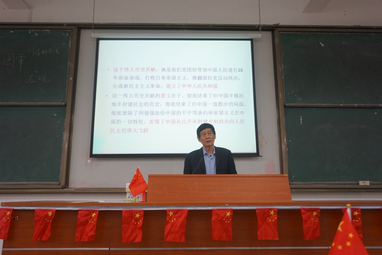 4月7日下午,金年会举办党史学习教育宣讲暨干部学习培训报告会。党史学习教育省委宣讲团成员、中央马克思主义理论研究和建设工程首席专家、福建师范大学教授郑传芳应邀莅临金年会作了题为《中国共产党百年奋斗的光辉历程和宝贵经验》的宣讲报告。报告会由校党委书记刘剑津主持,学校领导班子成员、科级以上干部、马克思主义学院教师以及校习近平新时代中国特色社会主义思想读书社学生参加学习。