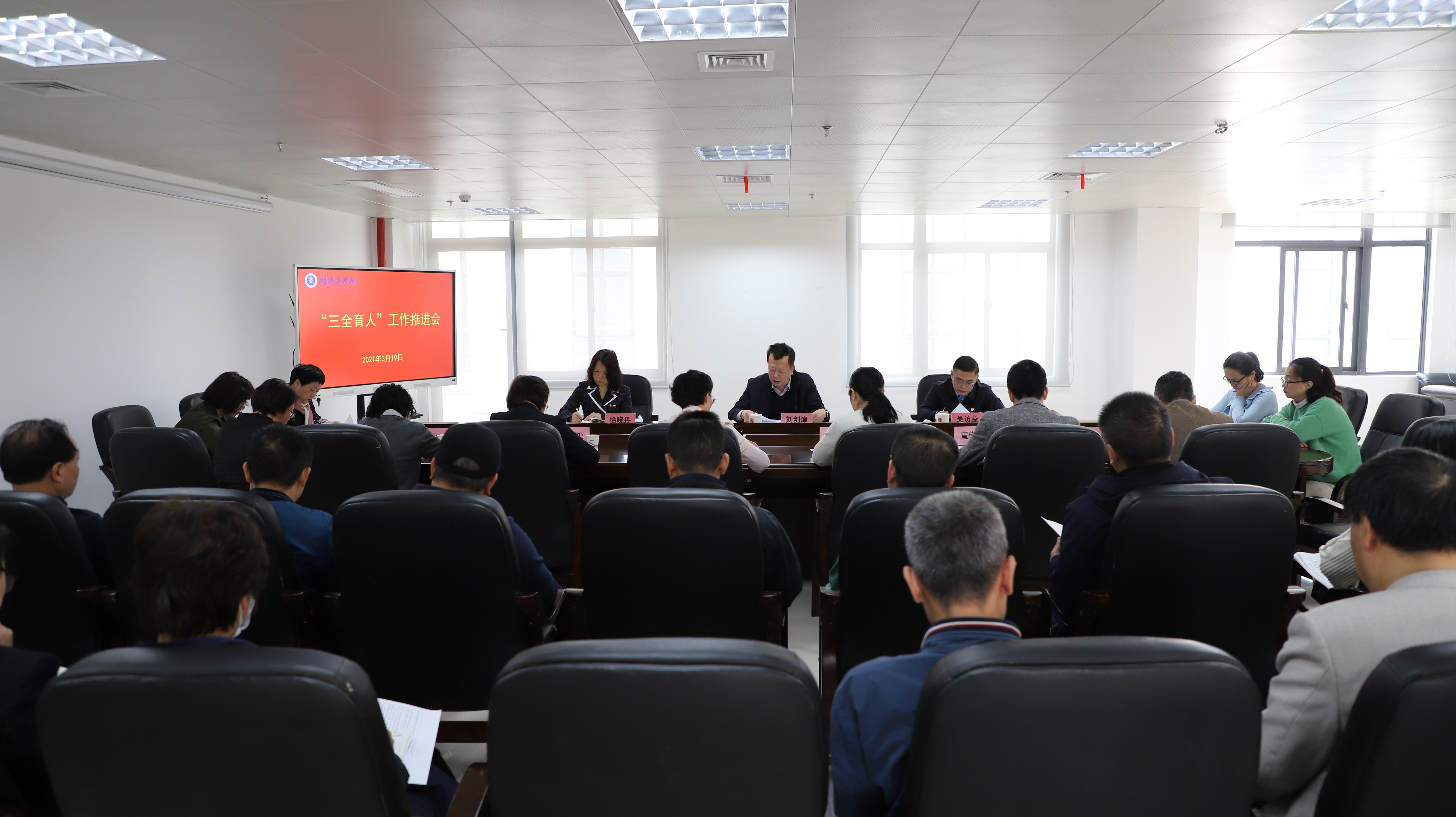 为进一步深入学习贯彻全国教育大会、全国高校思想政治工作会议和学校思想政治理论课教师座谈会精神,牢牢把握立德树人根本任务,切实推进学校“三全育人”工作,3月19日上午,金年会“三全育人”工作推进会在连江校区召开。校党委书记刘剑津、校党委副书记徐晓丹,机关部处(室、中心)负责人、二级学院党组织负责人参加会议。会议由校党委副书记吴访益主持。
