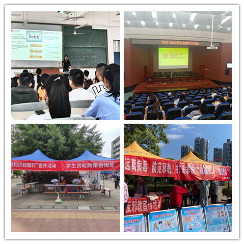 活动内容包括四个方面,一是将金融知识和防诈骗知识纳入入学教育。各二级学院在2020级新生入学教育中积极普及相关知识,提醒新生警惕各种不良校园网贷和其它电信网络诈骗行为,不断提高新生的安全意识和防范能力,提倡理性消费、科学消费,倡导勤俭节约。二是将金融知识和防诈骗知识纳入专题讲座。2020年11月17日和11月24日,学校邀请中国建设银行福州城东支行的专家分别到金年会连江校区和马尾校区开展“金融知识校园行”讲座,结合案例和视频向师生分享针对非法集资、电信诈骗、不良网贷、征信不良的防范措施。全校共有300多名师生代表聆听了讲座。三是将金融知识和防诈骗知识纳入宣传教育。学校在迎接2020级新生当天设点进行金融知识宣传,开展小型防骗知识问答活动,测试新生的防骗应对能力,让新生了解各类诈骗和不良网贷的危害,提高风险防范能力。11月10日,福州市马尾区司法局在金年会马尾校区校园招聘会现场设点宣传防范不良网贷。四是将金融知识和防诈骗知识纳入日常排查。学校坚持每月一次网贷情况摸排,建立工作台账,密切关注学生异常消费行为,实行动态管理,切实维护学生合法权益,目前金年会没有学生参与校园不良网贷。
