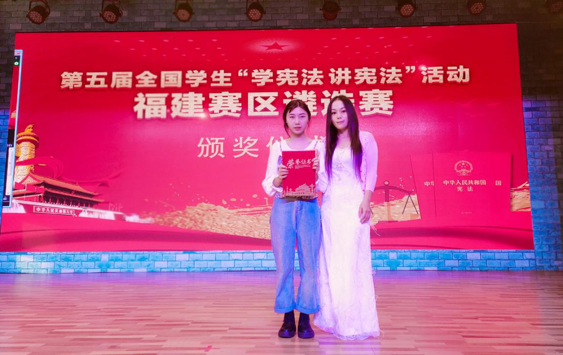 本次比赛由福建省教育厅、福建省司法厅主办,旨在贯彻落实习近平总书记关于宪法学习宣传教育的系列重要指示精神,引导青少年学生自觉成为宪法的忠实崇尚者、自觉遵守者、坚定捍卫者。接到相关通知后,学校高度重视、精心策划、积极组织,在广大学生中掀起了学习宪法知识、弘扬宪法精神的新热潮。决赛获奖的6位选手除了刘佳丽同学外,其他选手都是法学专业学生,但刘佳丽同学勇于直面挑战,凭借系统全面的复习、沉着冷静的参赛状态,披荆斩棘突出重围,最终以140分的成绩荣获三等奖。